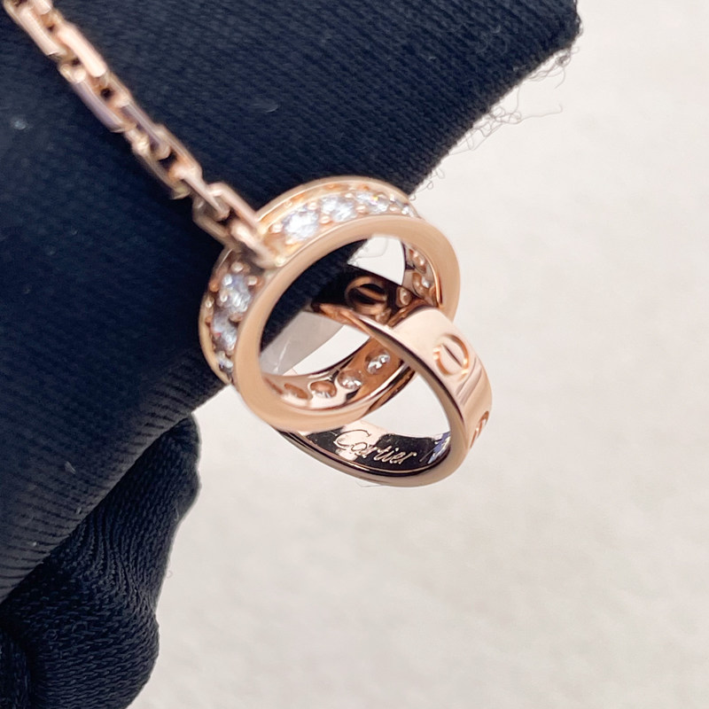 天猫【自营】中古99新卡地亚Love系列双环项链镶18颗钻项链玫瑰金送礼