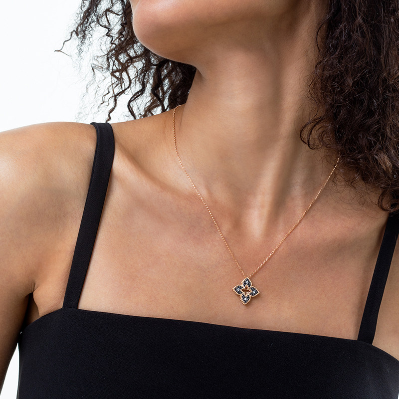 ROBERTOCOIN/珂瑛VENETIAN PRINCESS双面黑钻项链,灵感源自威尼斯公主的优雅与神秘,融合意大利精湛工艺与现代奢华美学。项链采用18K金镶嵌,双面设计巧妙呈现黑钻的深邃魅力,一面闪耀夺目,一面内敛华贵,可随心翻转,适配不同场合。黑钻如夜空星辰,散发独特高级感,搭配流畅线条与品牌标志性“X”扣饰,彰显低调奢华。每一颗钻石均经严格甄选,确保火彩与品质。VENETIAN PRINCESS系列象征女性多面魅力,是自信与品味的象征。无论是晚宴还是日常搭配,这款项链皆为点睛之笔,诠释永恒优雅与现代风格的完美平衡。