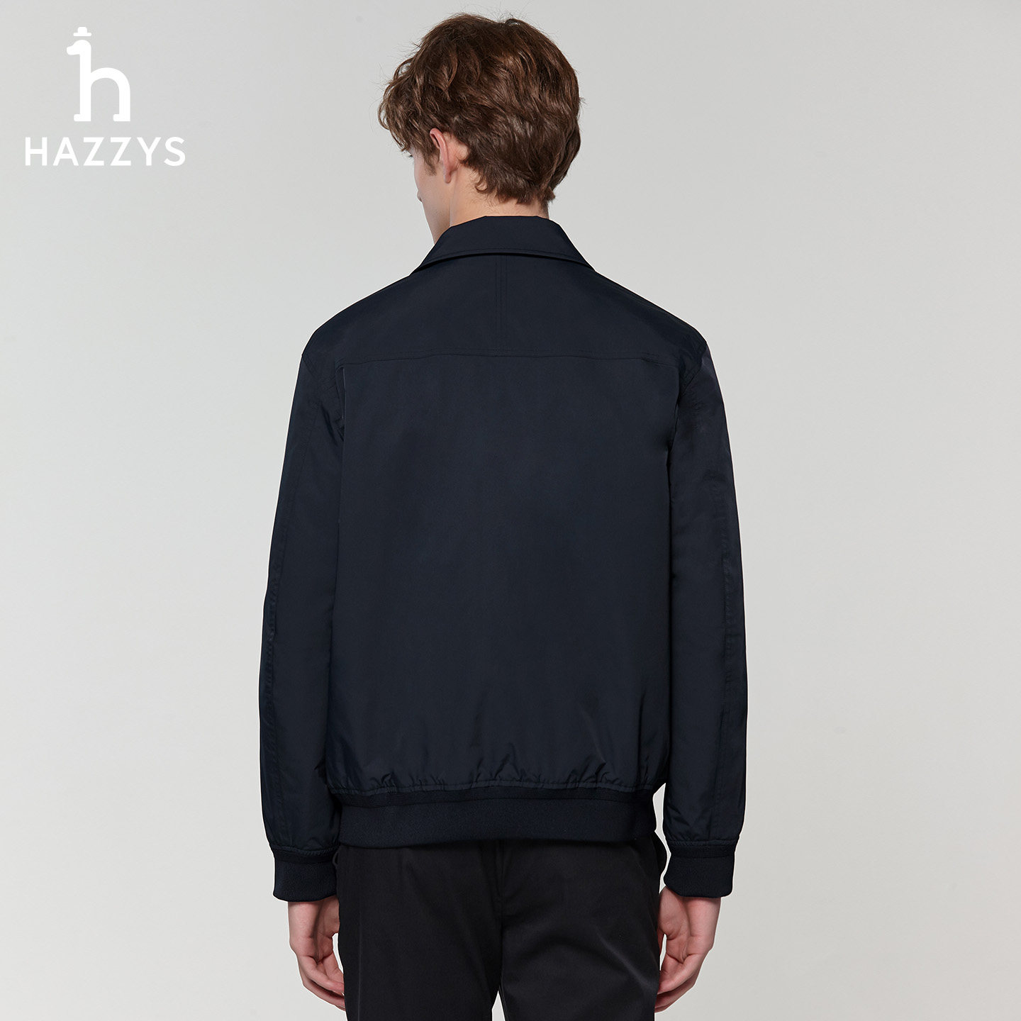 天【保暖棉服】Hazzys哈吉斯男装春季通勤上衣外套纯色翻领拉链夹克