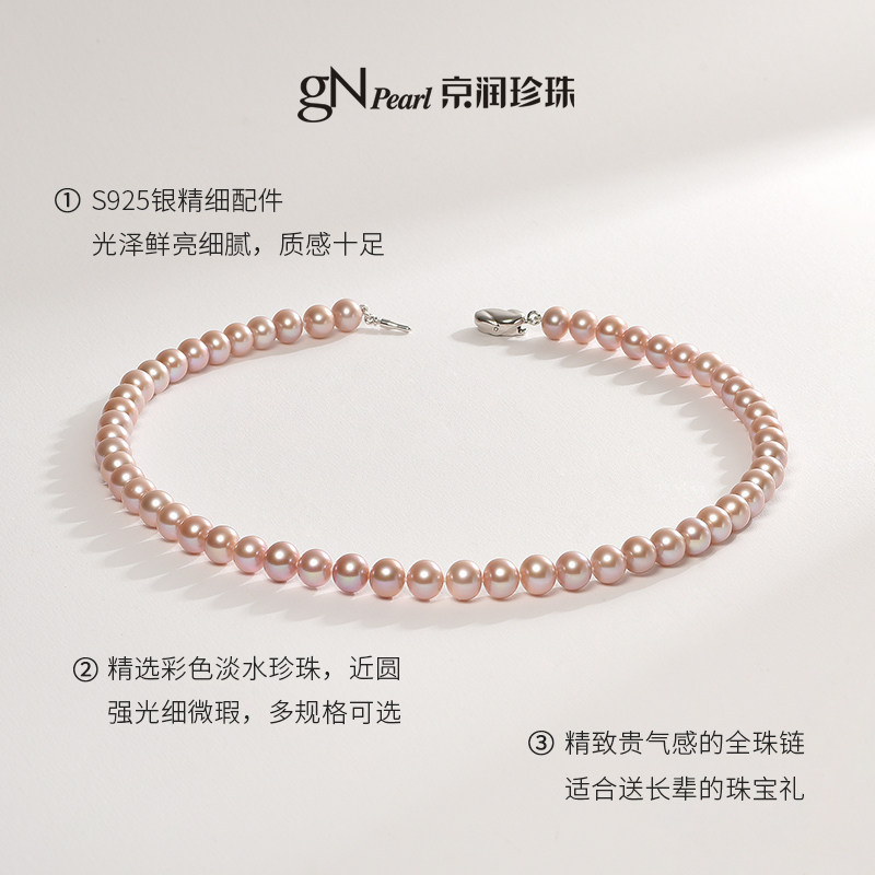 京润珍珠“芬芳近圆彩色淡水珍珠项链”是一款典雅精致的经典全珠链,精选优质淡水珍珠,颗颗圆润饱满,光泽温润迷人。独特的天然彩色晕彩,如粉紫、淡金、银灰等,赋予项链浪漫而高贵的气质,适合日常佩戴或重要场合搭配。采用全珠串联设计,层次丰富,佩戴舒适,展现东方女性的优雅与自信。无论是作为生日、情人节、母亲节还是节庆礼物,都寓意美好与祝福,传递深情厚意。京润珍珠以匠心工艺与严苛品控,确保每一条项链都品质卓越,是馈赠亲友或犒赏自己的理想之选。