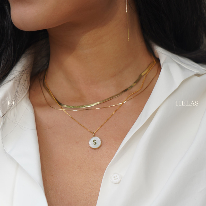 天猫谭松韵同款HELAS赫拉18K金贝母字母项链珍珠颈链吊坠送女友礼物