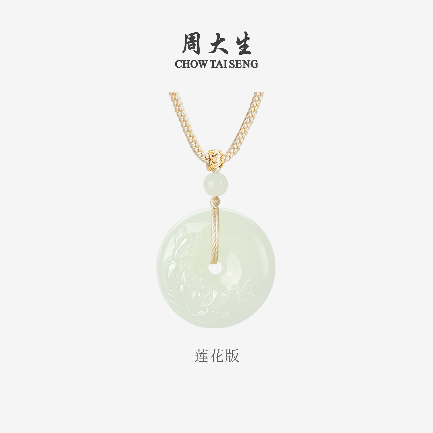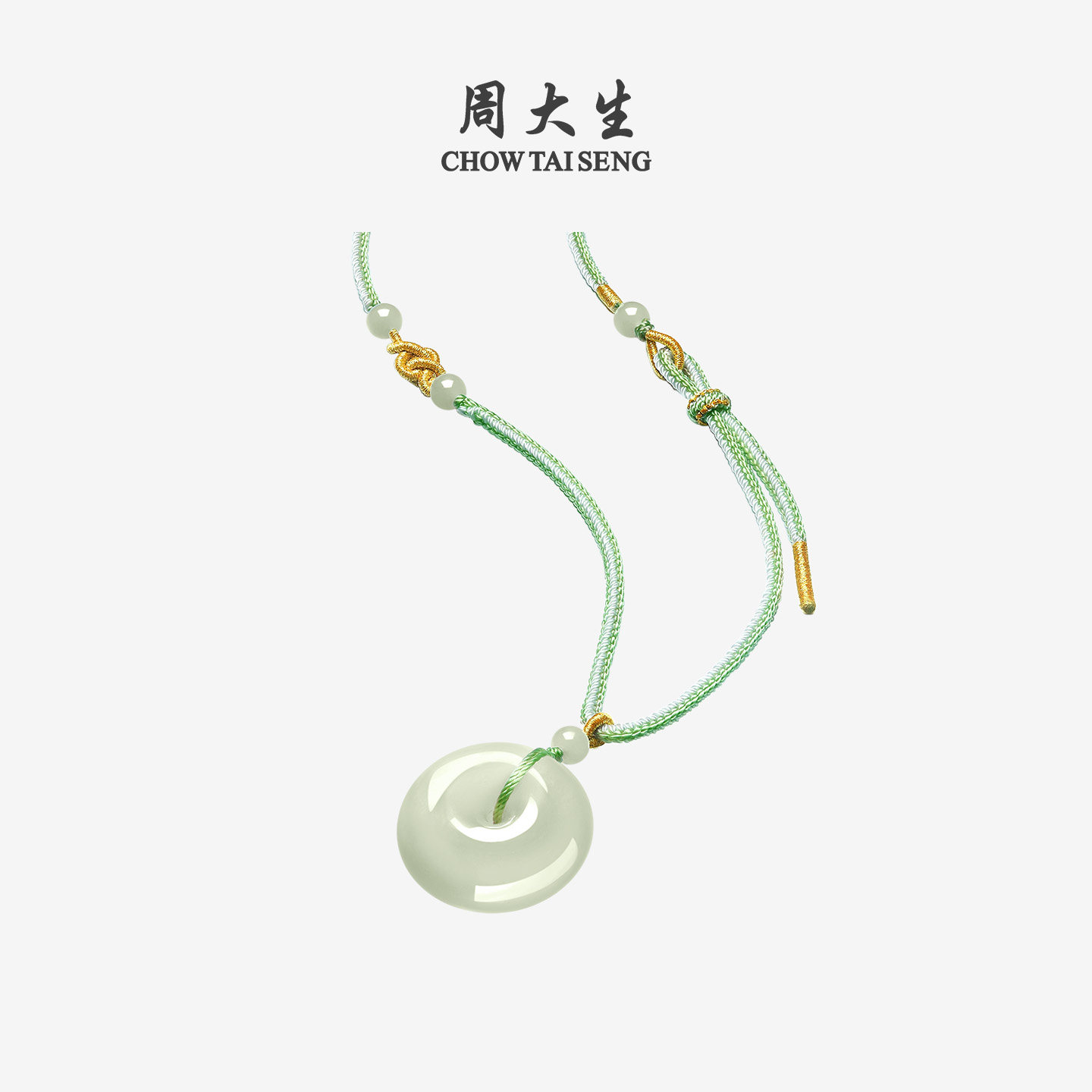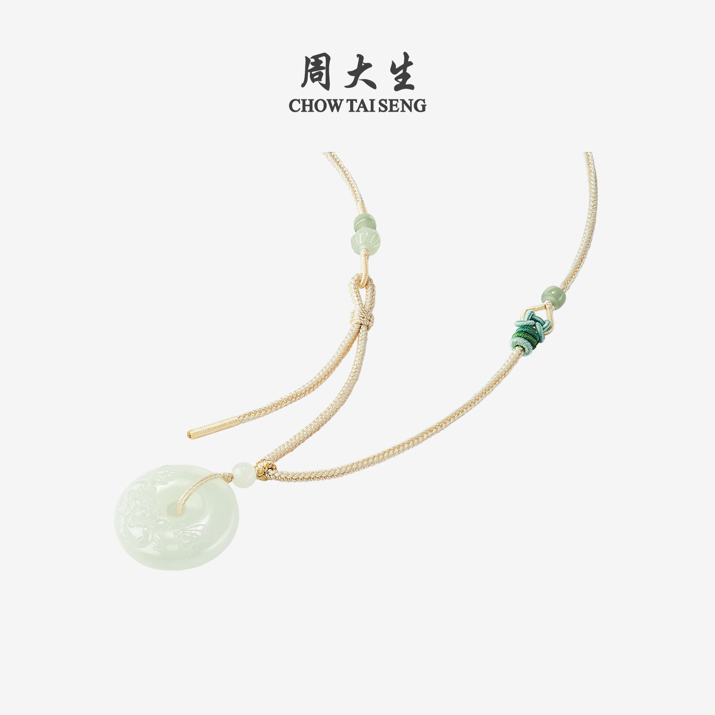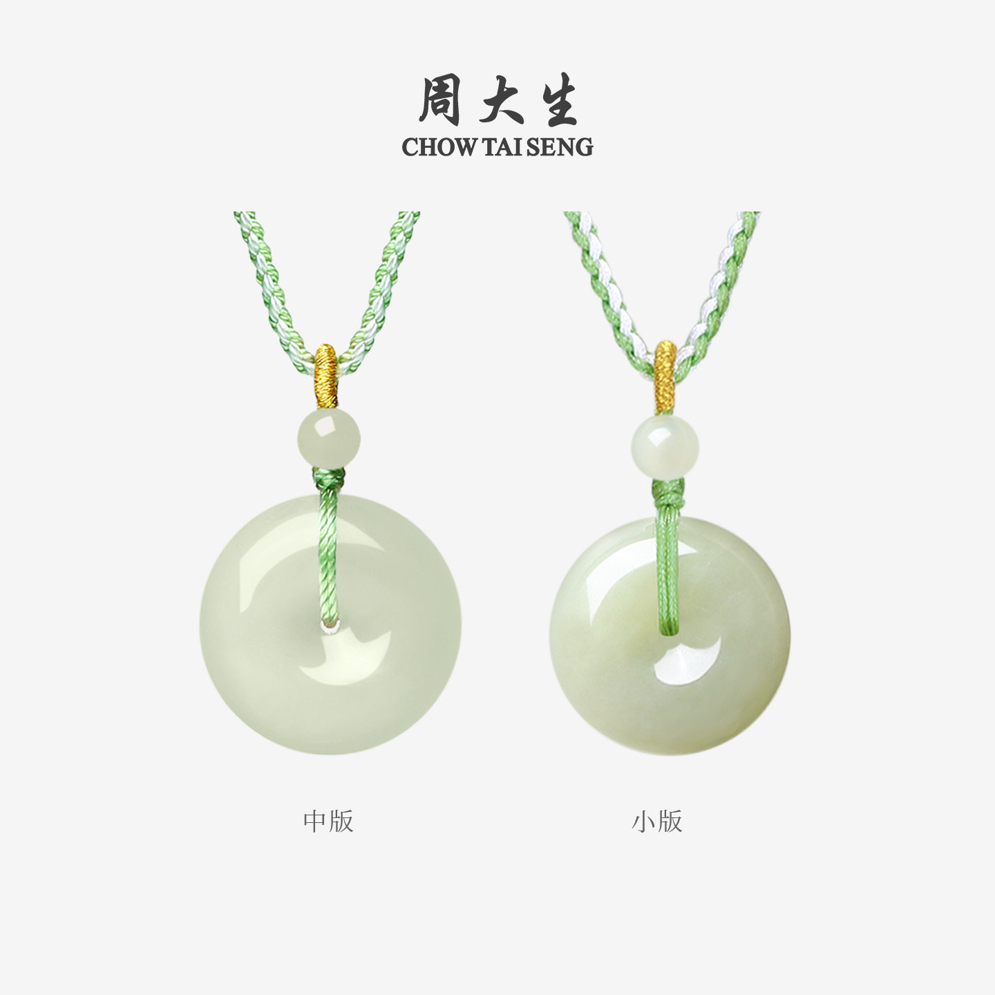 天猫周大生和田玉平安扣吊坠男女青白玉厚版情侣款项链挂坠生日礼物