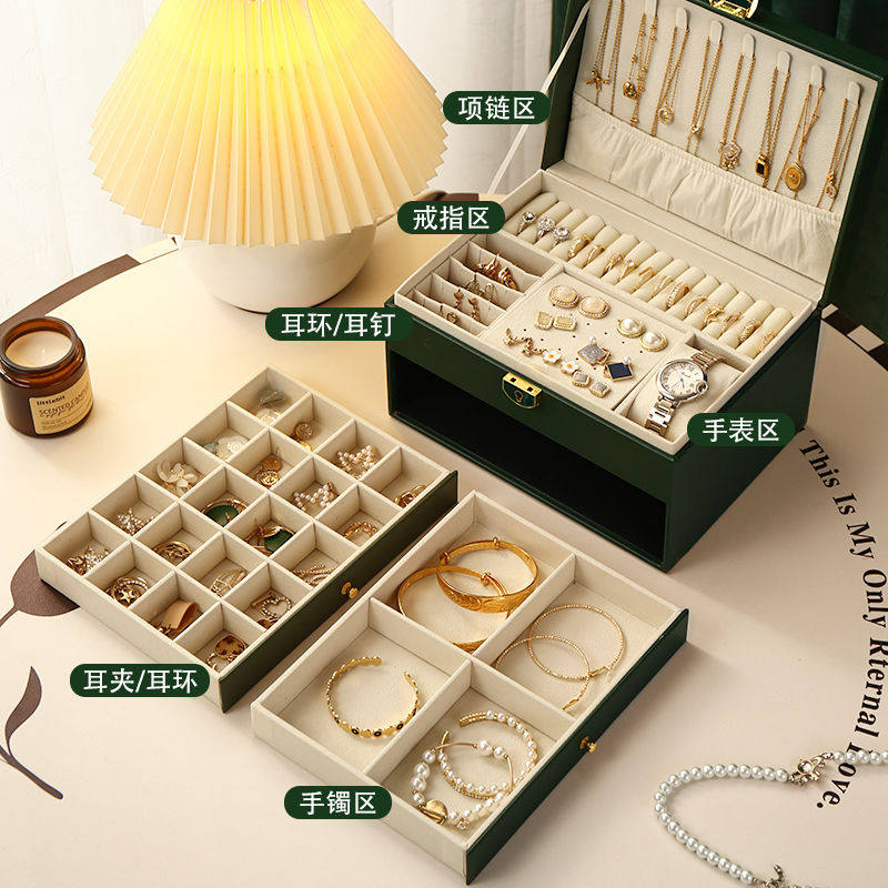 淘宝首饰收纳盒高档精致耳环耳钉项链戒指黄金手饰品盒子大容量珠宝箱