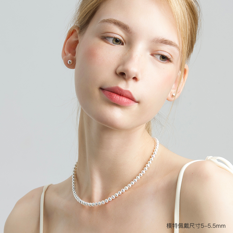 天周大生淡水珍珠项链近圆强光颈链锁骨链毛衣链送妈妈女友生日礼物