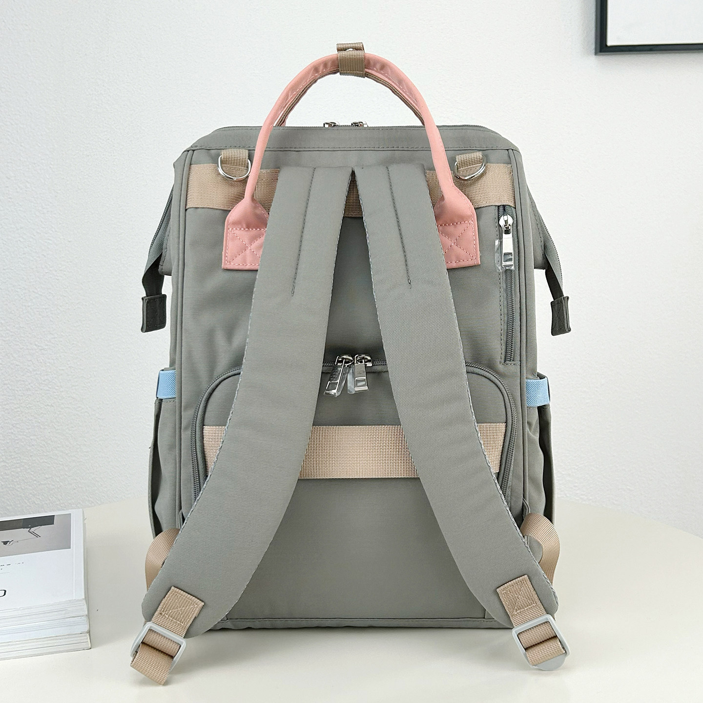 全新升级妈咪包双肩背包,专为时尚妈咪打造,集高颜值与实用性于一身。采用轻盈防水面料,背负舒适不闷热,大容量主仓搭配多隔层设计,轻松收纳奶瓶、尿布、湿巾、衣物等出行必需品。前置保温袋可保冷保温,侧边快取口袋方便拿取手机或纸巾。可调节肩带+背部透气垫设计,长时间背负也不累。时尚简约外观,通勤、逛街、短途旅行皆宜,是妈妈带娃出行的贴心伙伴。一包多用,轻松应对各种场景,让育儿出行更从容、更优雅。