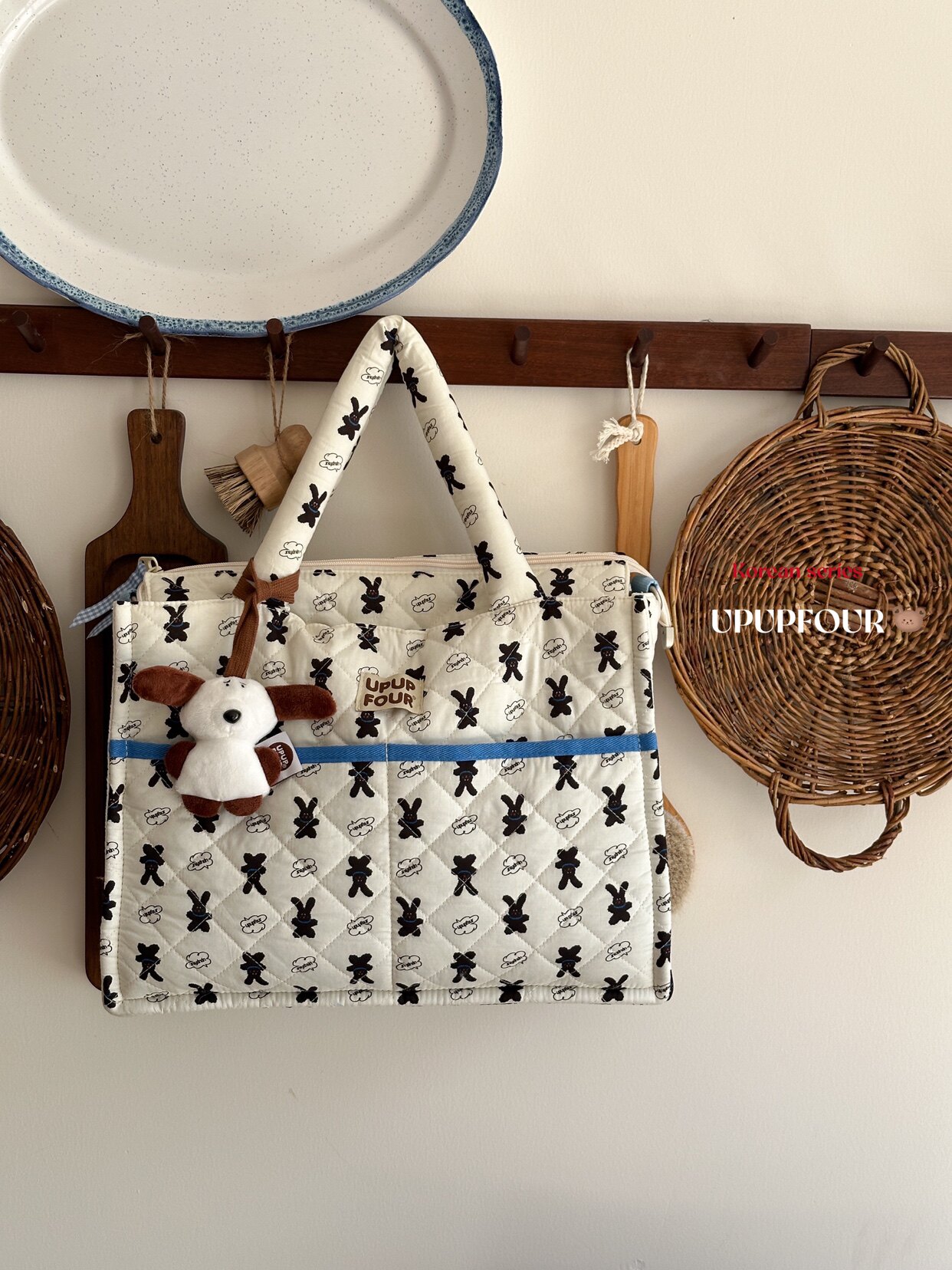 淘宝upupfour瑞拉小兔|原创自制韩国多功能纯棉绗缝刺绣妈咪包亲子包