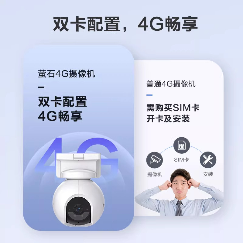 萤石HB8室外云台4G网络无线智能摄像头是一款专为户外安防设计的智能监控设备。采用4G全网通技术,无需Wi-Fi即可实现远程实时查看,特别适合无宽带覆盖的庭院、仓库、农场等场景。内置大容量可充电电池,支持太阳能板供电,续航持久且安装灵活。配备高清夜视功能,即使在漆黑夜晚也能清晰捕捉画面。支持手机APP远程操控,可360°云台旋转,实现全方位监控,并具备移动侦测、异常告警推送等功能,有效守护家庭与财产安全。IP66级防水防尘设计,适应各种恶劣天气,是户外智能安防的理想之选。