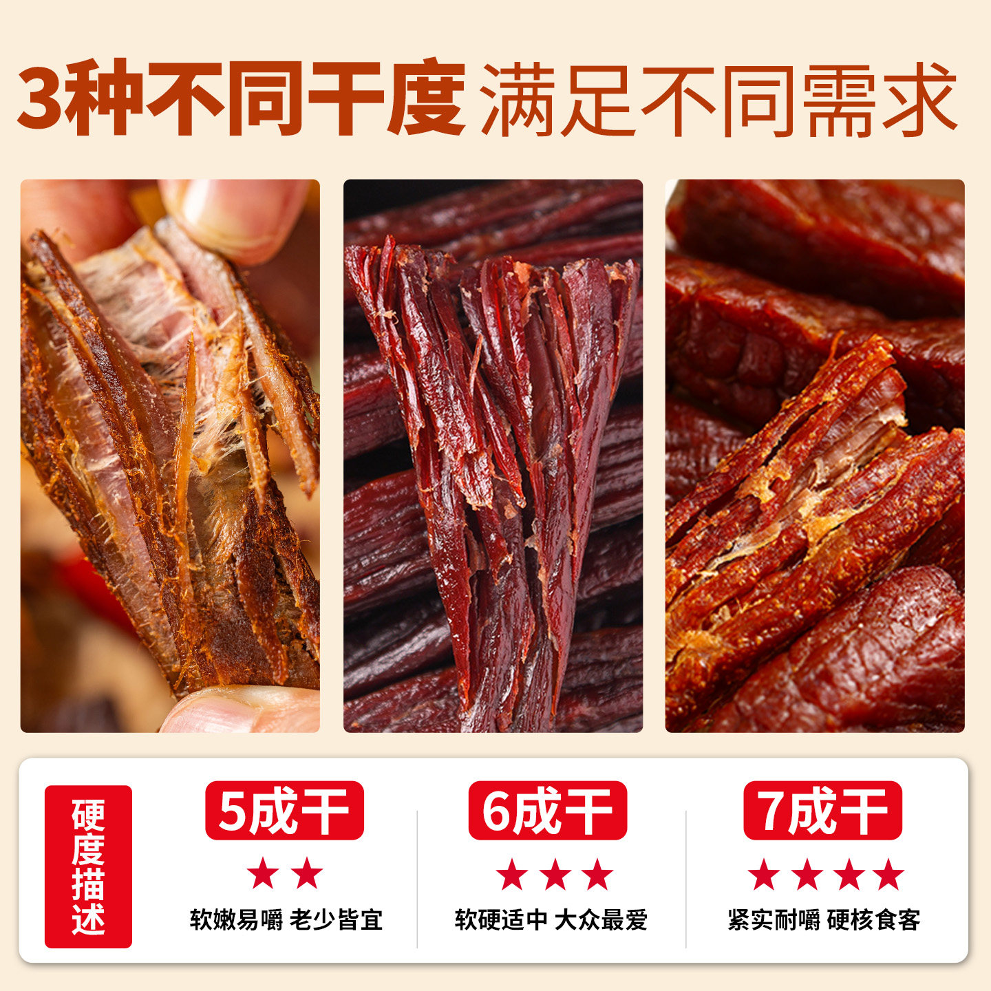 蒙时代风干牛肉干,源自正宗内蒙古草原,精选优质黄牛后腿肉,采用传统风干工艺,自然晾晒,不添加防腐剂,保留牛肉原始醇香与营养。肉质紧实、纹理清晰,手撕即食,口感韧而不柴,咸香适口,是健身增肌、户外旅行、日常零食的理想选择。真空独立包装,锁鲜防潮,便于携带与储存。蒙时代官方旗舰店直供,品质有保障,传承草原美味,让每一口都充满内蒙古的辽阔与纯粹。无论是补充蛋白质,还是解馋充饥,这款风干牛肉干都能满足你对健康与美味的双重追求。