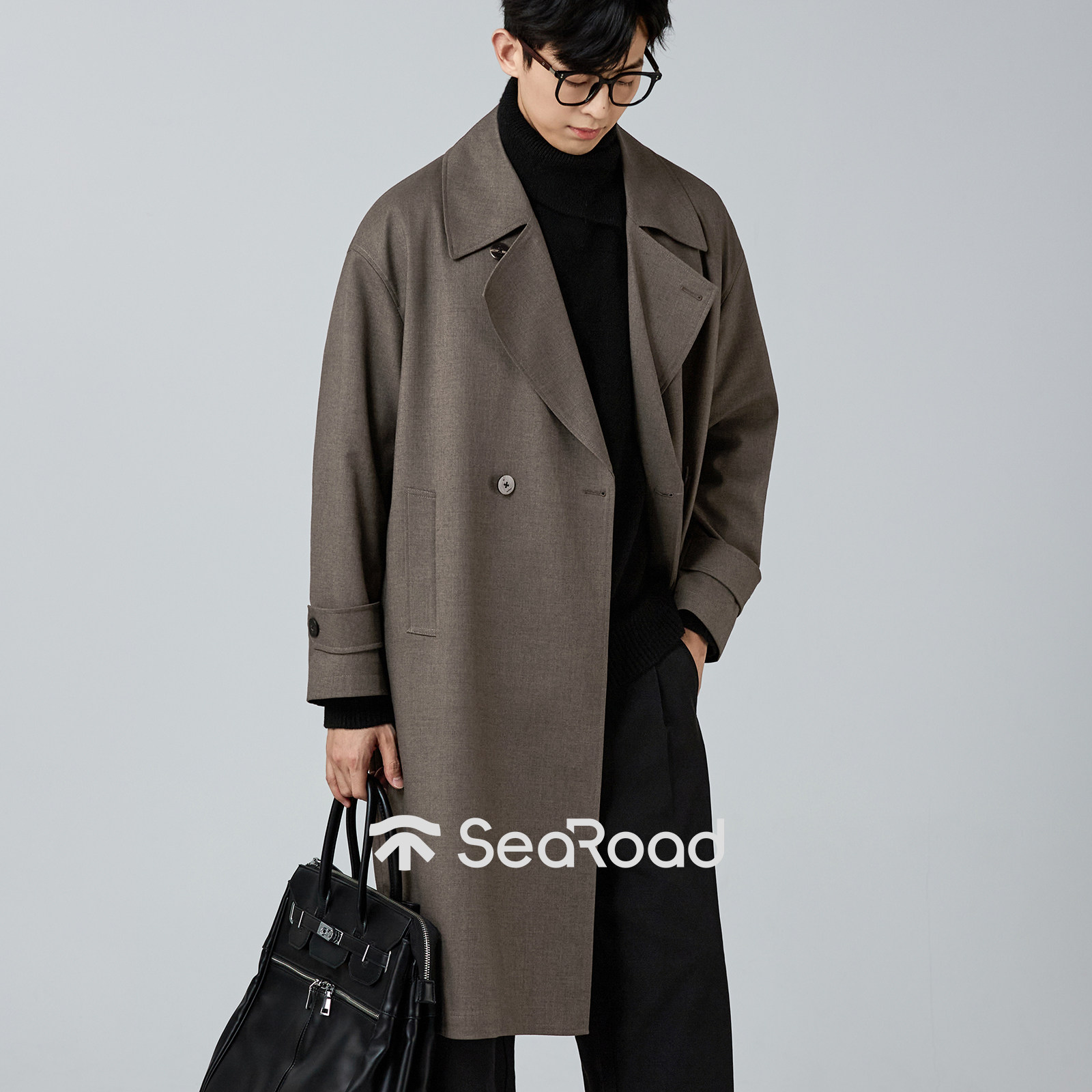 海上公路石纹肌理感风衣男士26年春季中长款松弛休闲通勤廓形外套