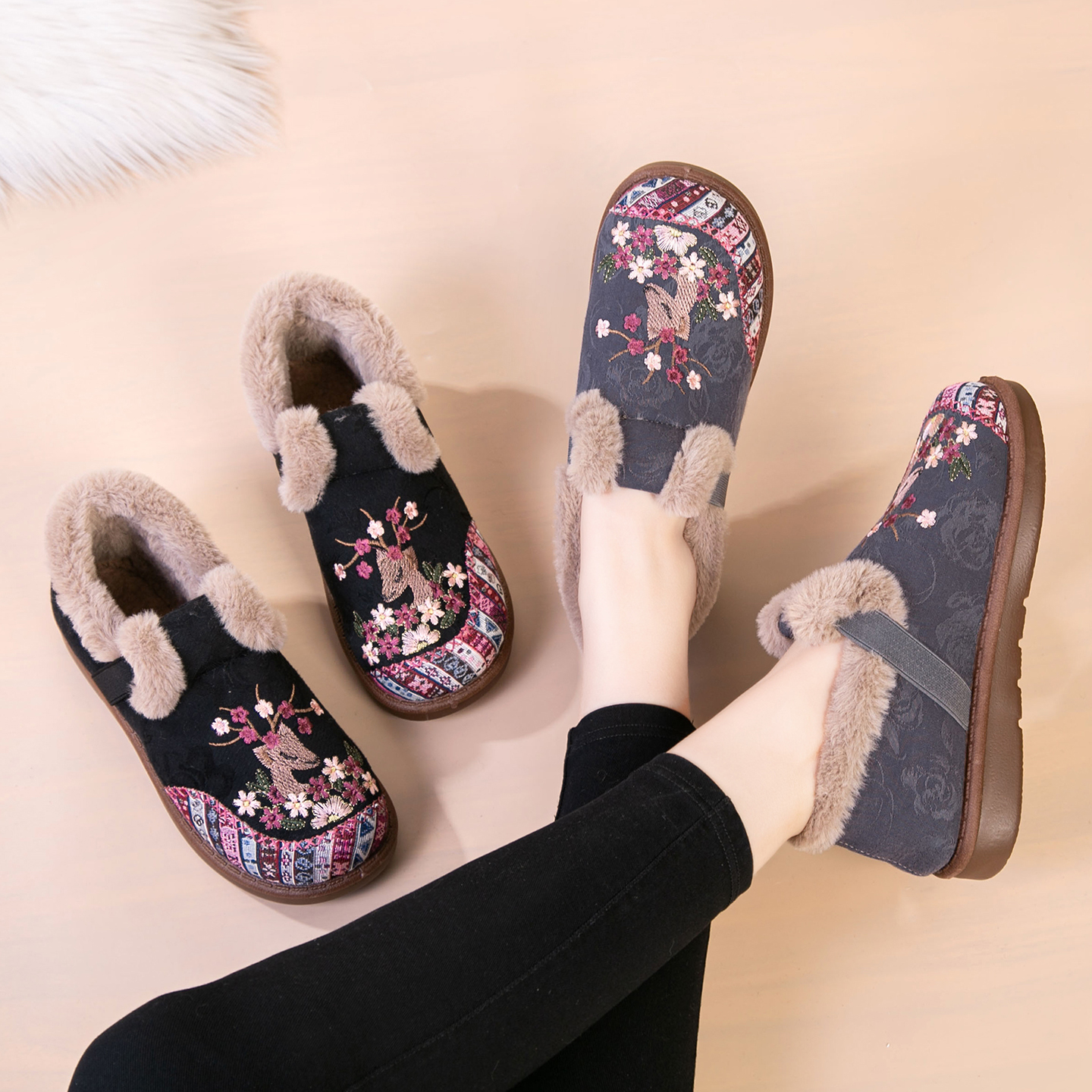 天猫老北京棉女鞋女士老人棉鞋女款妈妈布鞋奶奶棉拖鞋绣花毛毛鞋冬鞋