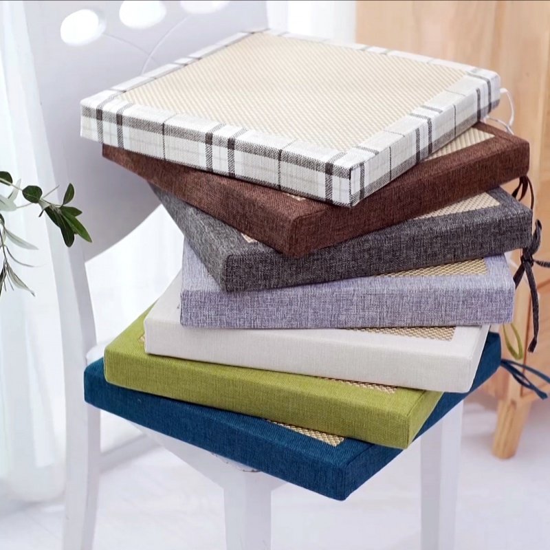 淘棉麻坐垫地板日式榻榻米丝绵布艺中式餐桌椅垫竹绑带方形屁垫四季