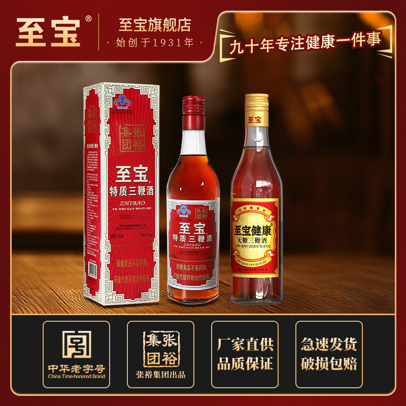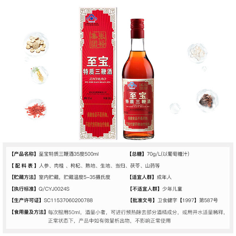 天猫张裕至宝特质三鞭酒人参枸杞鹿鞭滋补养生保健补酒500ml盒装组合