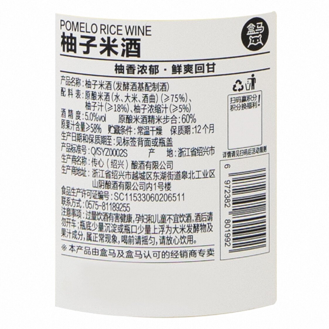 淘宝盒马柚子米酒500mlYUZU香柚搭配常山胡柚鲜爽回甘低温发酵包邮