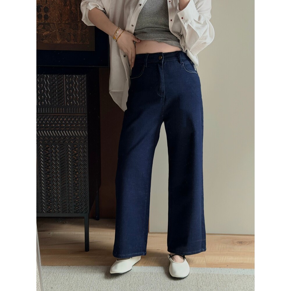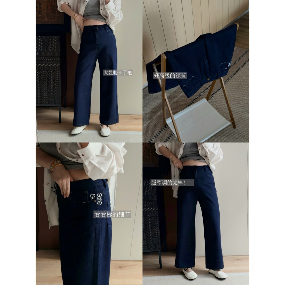 【林间沉野】Uena明星同款蓝色水洗做旧猫须宽松阔腿休闲牛仔裤女