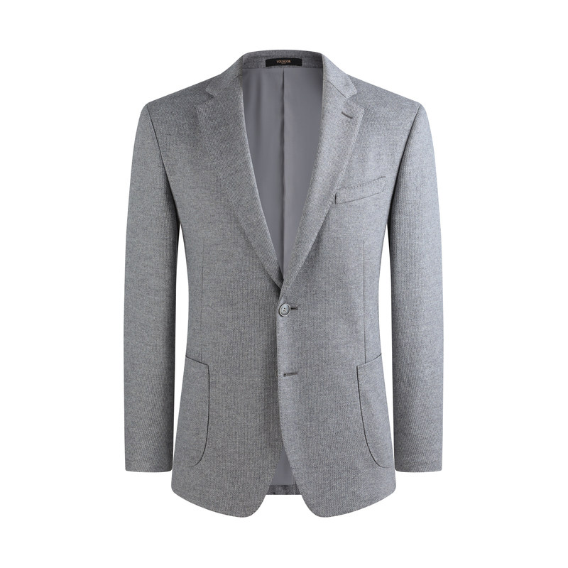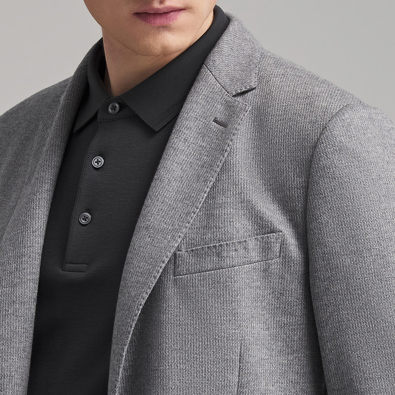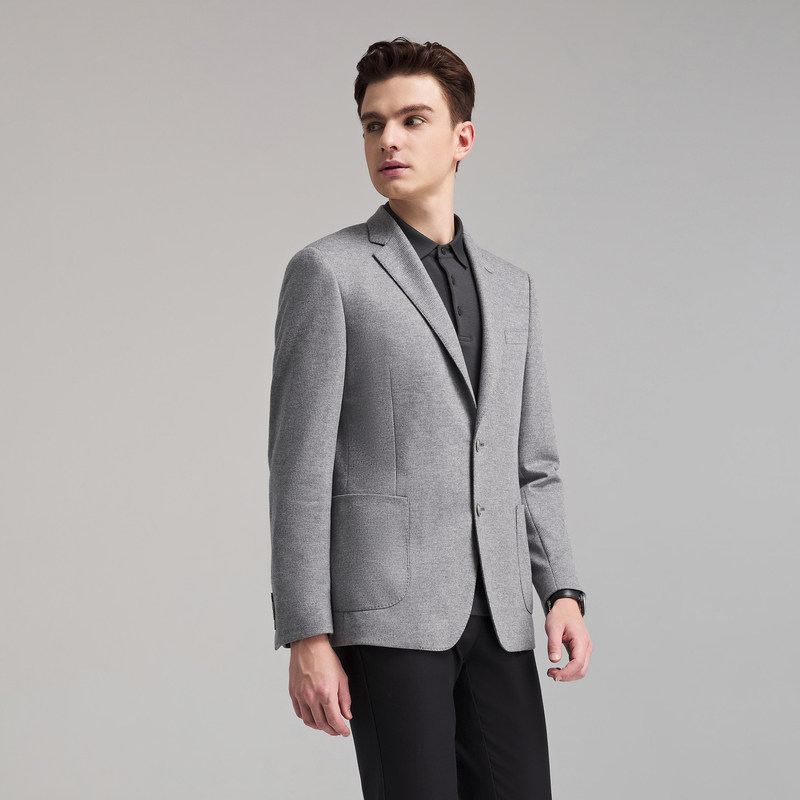 雅戈尔2024春夏男士西服新品,融合商务与休闲风格,专为都市精英打造。采用高品质针织弹力羊毛面料,轻盈透气,兼具挺括感与舒适弹性,适应春夏季节穿着需求。经典单西设计,剪裁利落,线条流畅,轻松应对上班、会议或轻商务场合。衣身融入精致小花型纹理,低调中彰显品味,打破传统正装沉闷感。内搭衬衫或 Polo 衫皆宜,轻松实现从办公室到休闲聚会的无缝切换。雅戈尔以匠心工艺与创新材质,诠释现代男士的优雅与从容,是职场穿搭的理想之选。