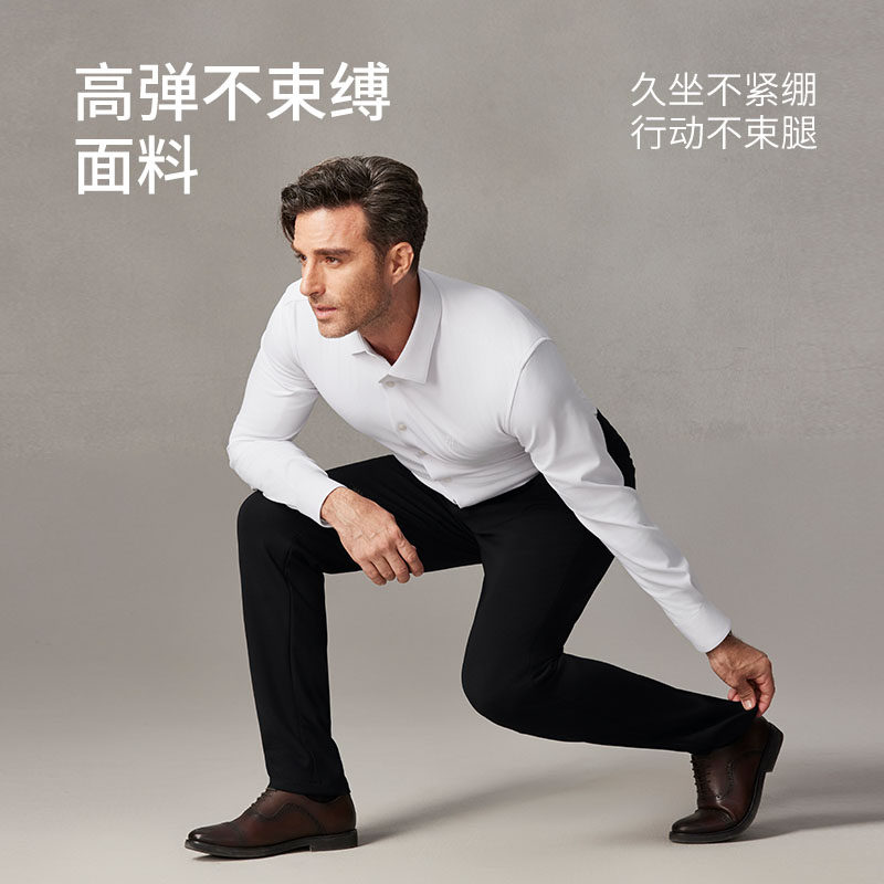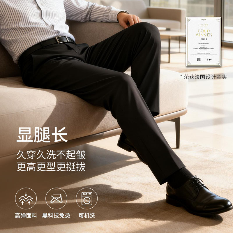 天猫欧定头等舱西装裤男士黑宝石畅迈Pro曜影黑色休闲高端直筒长裤男