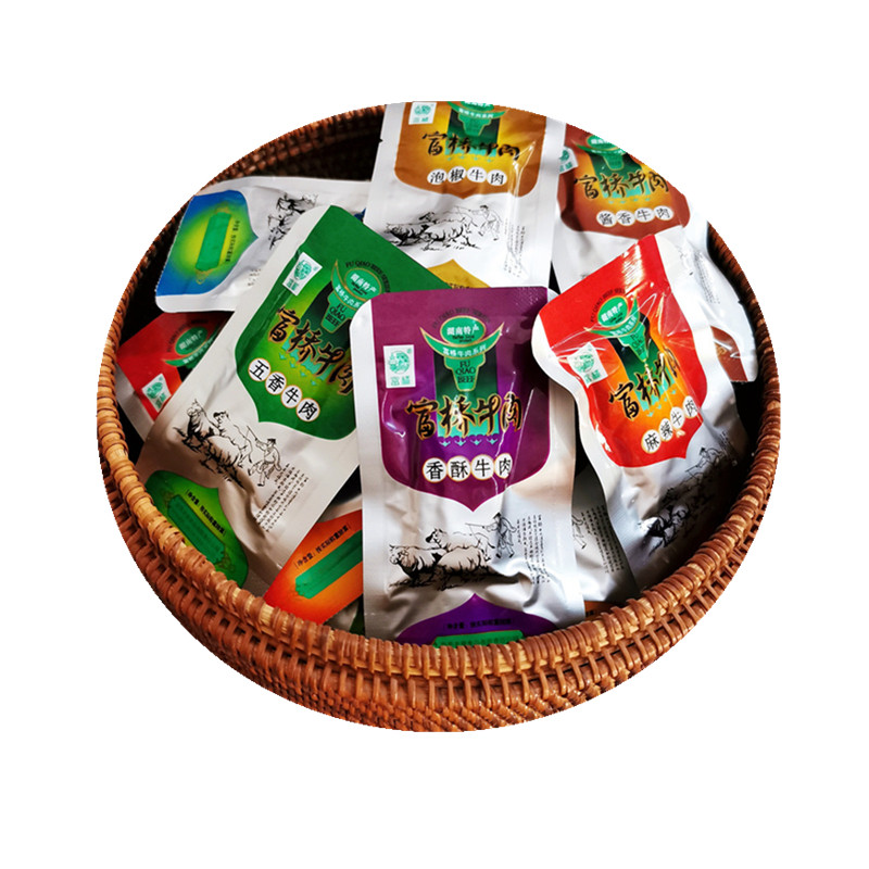 老厨摔打牛肉干五香辣沙嗲宿舍办公室小零食好吃网红沙爹散称包装
