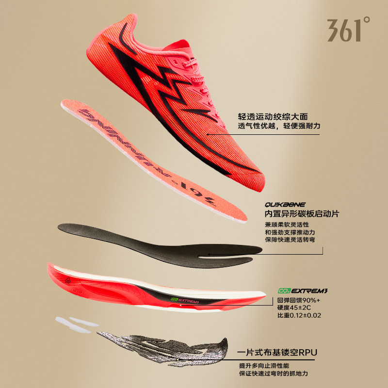 361°飚速Future是一款专为体育生和专业跑者打造的高性能碳板竞速训练鞋。融合轻量化工程网布与动态包裹系统,提供卓越透气性与贴合感。内置全掌碳板搭配高回弹泡棉中底,有效提升能量反馈与推进力,助力提速突破。前掌上翘设计优化步态过渡,增强跑步经济性。外底采用高耐磨橡胶,关键区域强化抓地力,适应多种跑道环境。无论是体测冲刺、日常训练还是田径竞赛,361°飚速Future都能为跑者提供稳定支撑与强劲动力,是追求速度与效率的理想之选。