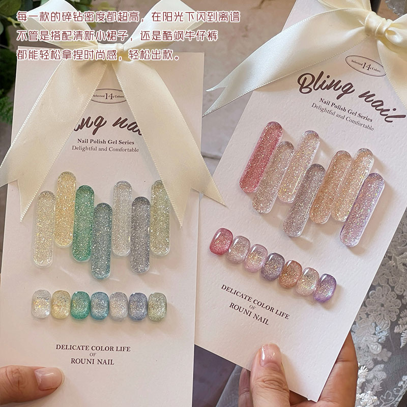 淘宝rouni柔倪星仙碎钻14色甲油胶2025年新款高密度爆闪胶美甲店专用