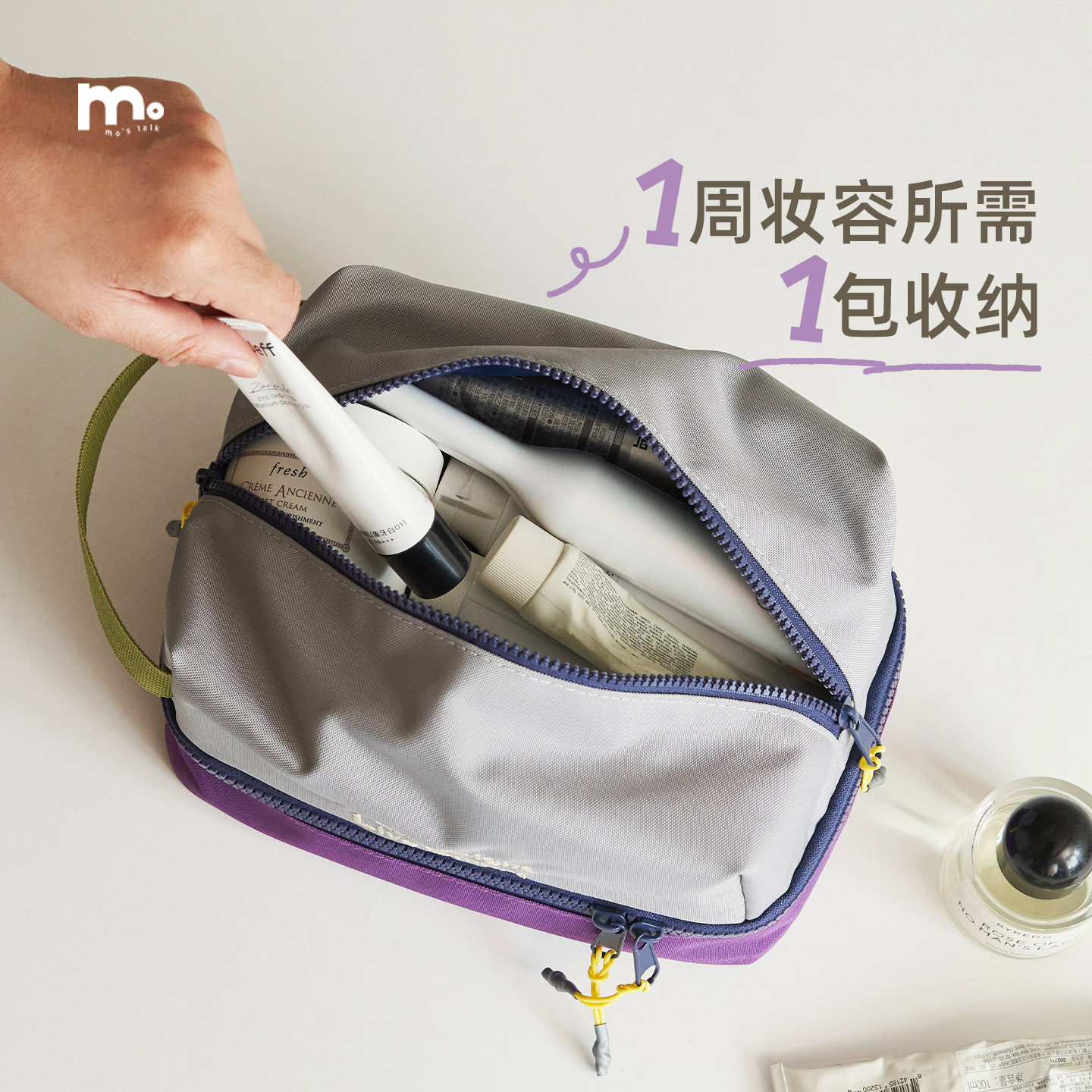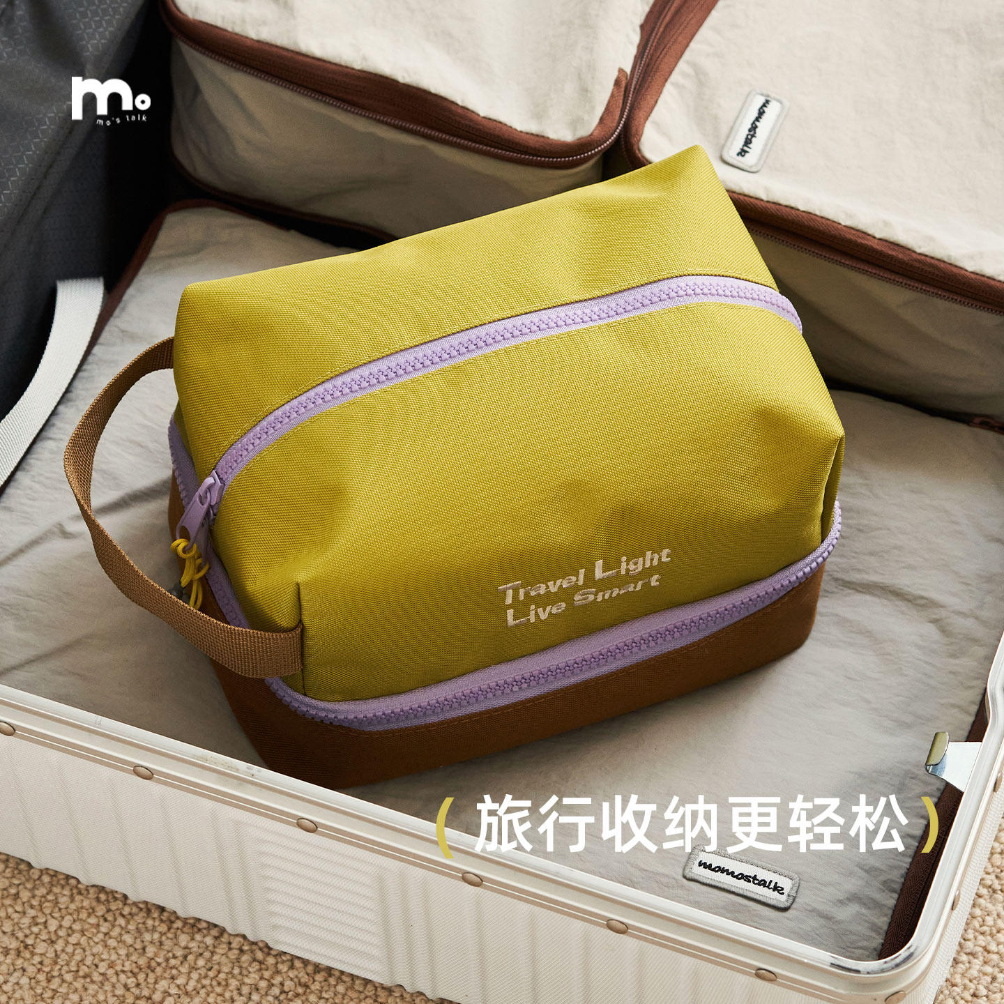 莫语出行洗漱收纳袋,专为追求品质与实用的旅行者设计。采用高级防水面料,质感细腻,耐用抗污,尽显高级感。创新干湿分离设计,内设独立防水仓,轻松区分湿毛巾、洗漱用品与干燥物品,保持整洁有序。大容量主仓搭配多格分层,可容纳化妆刷、护肤品、剃须刀等多样物品,满足长途出行需求。手提与挂式设计兼顾便携与悬挂便利,可轻松挂于浴室或行李箱上。轻盈紧凑,折叠后不占空间,是差旅、度假的理想伴侣。莫语,让每一次出行都从容优雅。