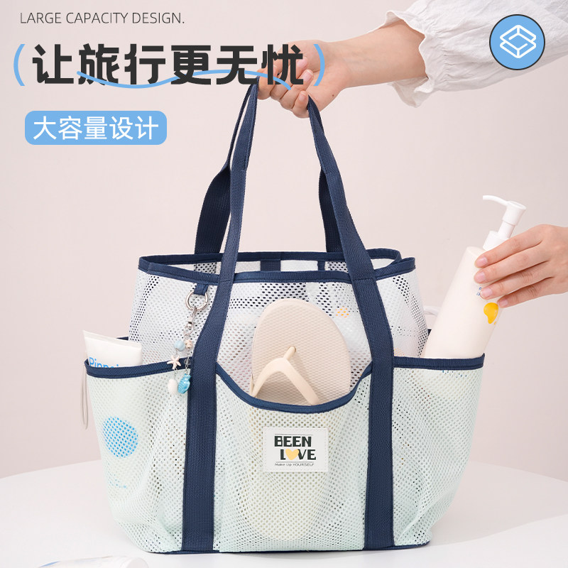 淘宝网眼游泳包手提大容量沙滩包旅游洗澡健身洗漱泳衣收纳网纱浴兜袋