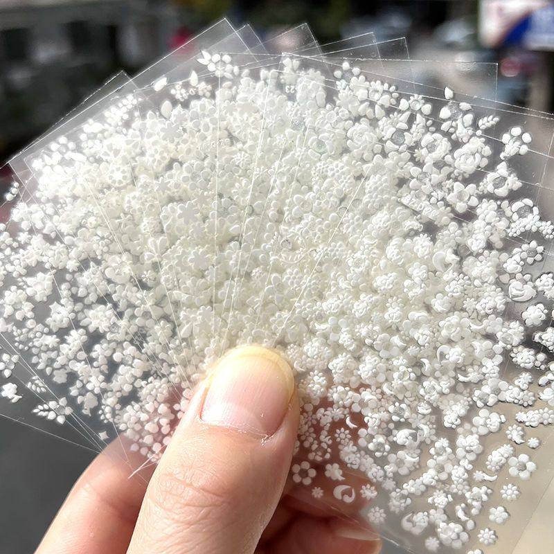 淘白色雪花美甲贴纸新款浮雕5d网红ins立体日系3d指甲贴纸晶钻 装饰