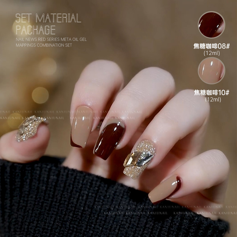 美甲焦糖咖啡色甲油胶是一款时尚的指甲油产品,适合爱美女性进行美甲DIY。该产品为秋冬美拉德系列指甲油中的最新款式,以白色奶茶裸棕色为主色调,质感细腻,色彩饱满,易于涂抹均匀。其独特的配方能够持久保持色泽鲜艳,不易脱落,让您的美甲效果更加持久自然。无论是搭配简约时尚的日常装扮还是优雅高贵的晚宴礼服,这款美甲焦糖咖啡色甲油胶都能为您的指尖增添一抹亮眼的色彩。快来尝试这款新品指甲油,展现您的时尚魅力吧!