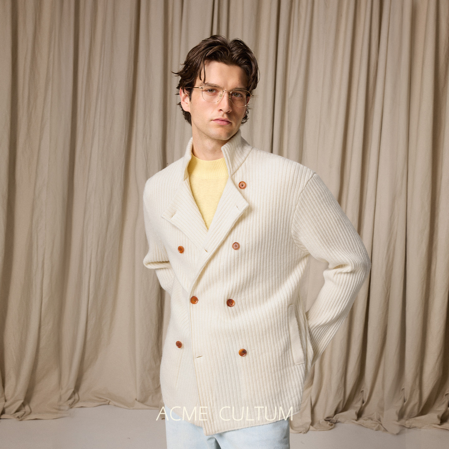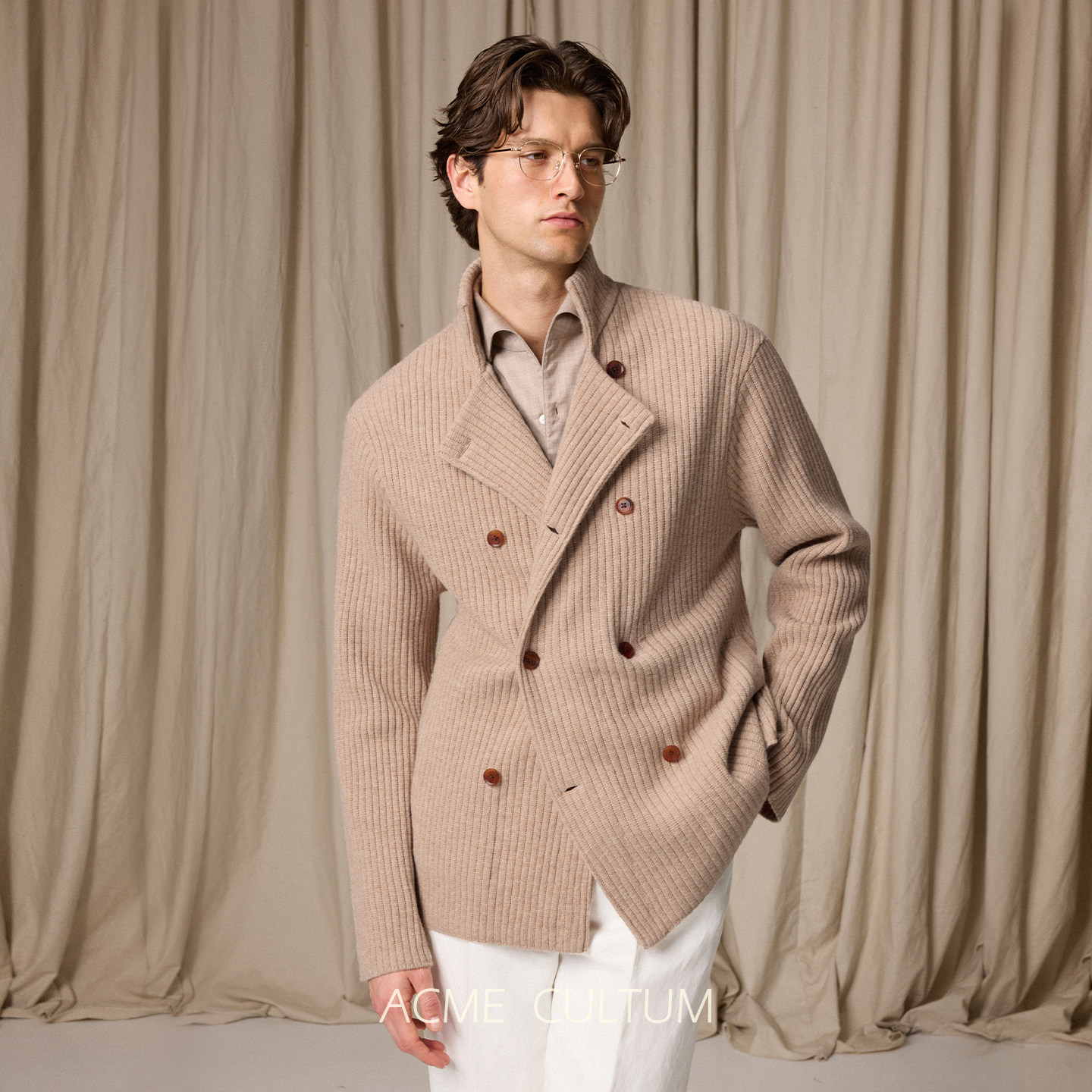 天猫Acme cultum可机洗美利奴羊毛双排扣毛衣针织开衫男夹克外套春季