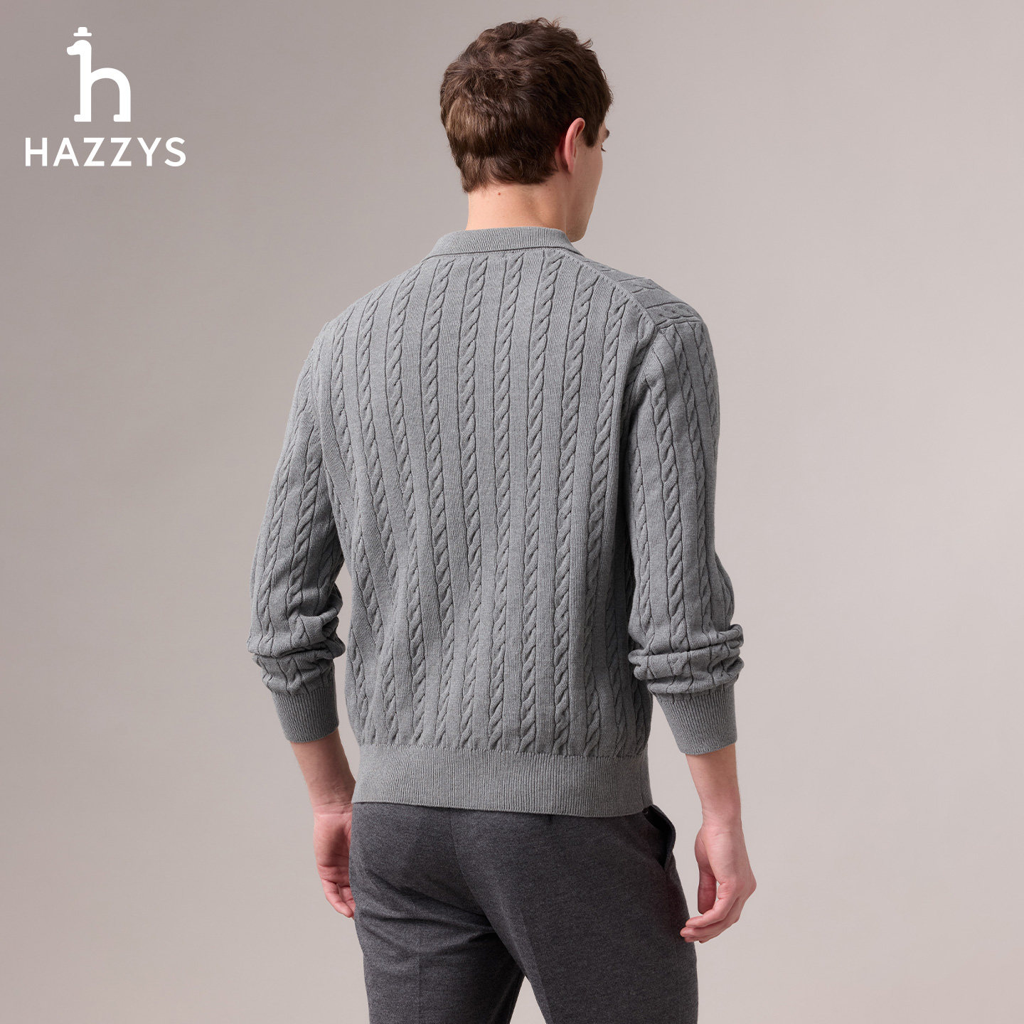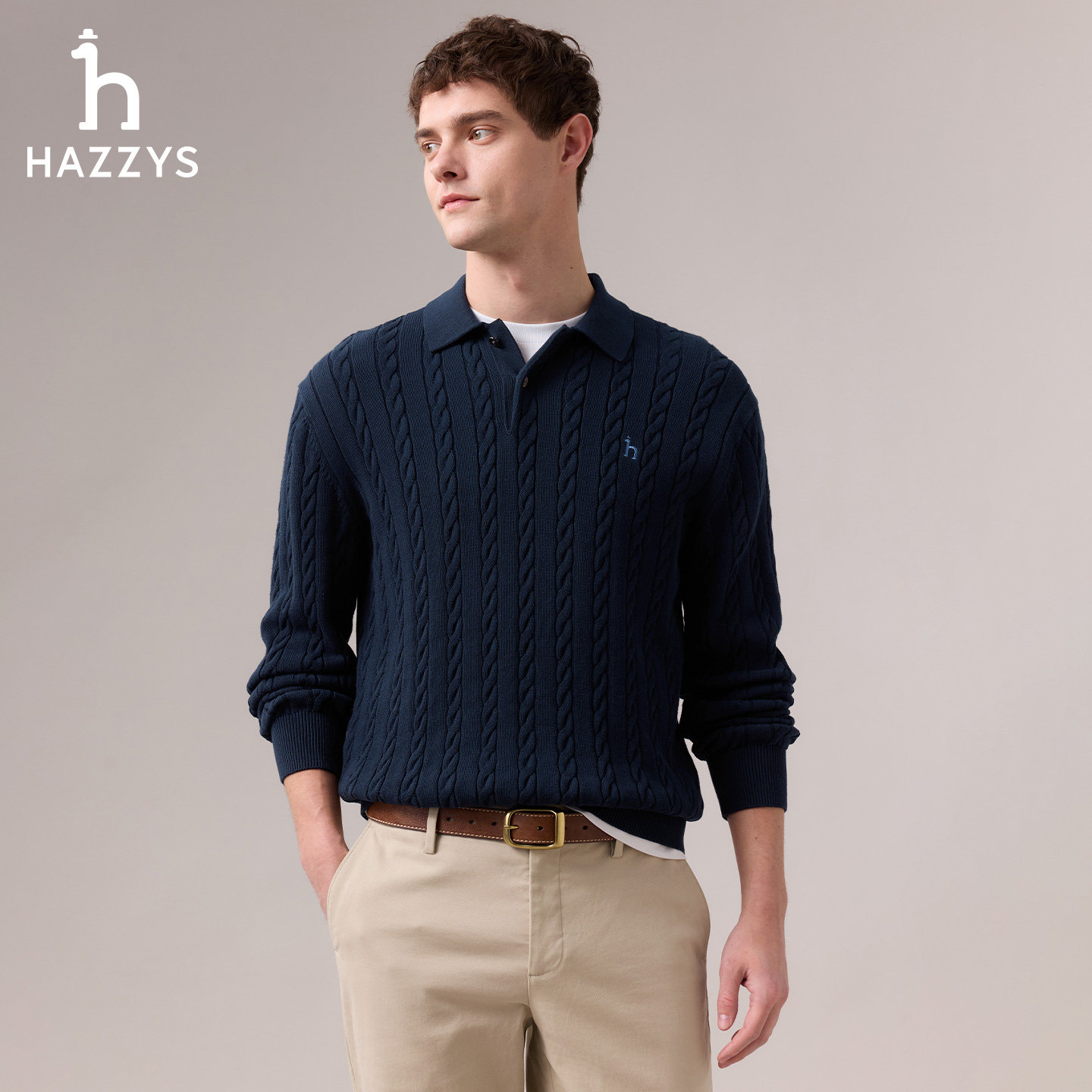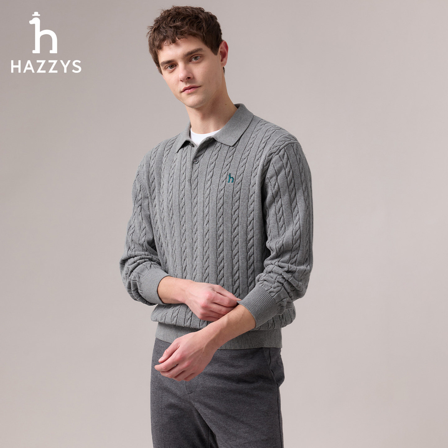 天猫【商场同款】Hazzys哈吉斯秋季男士翻领两粒扣绞花针织衫