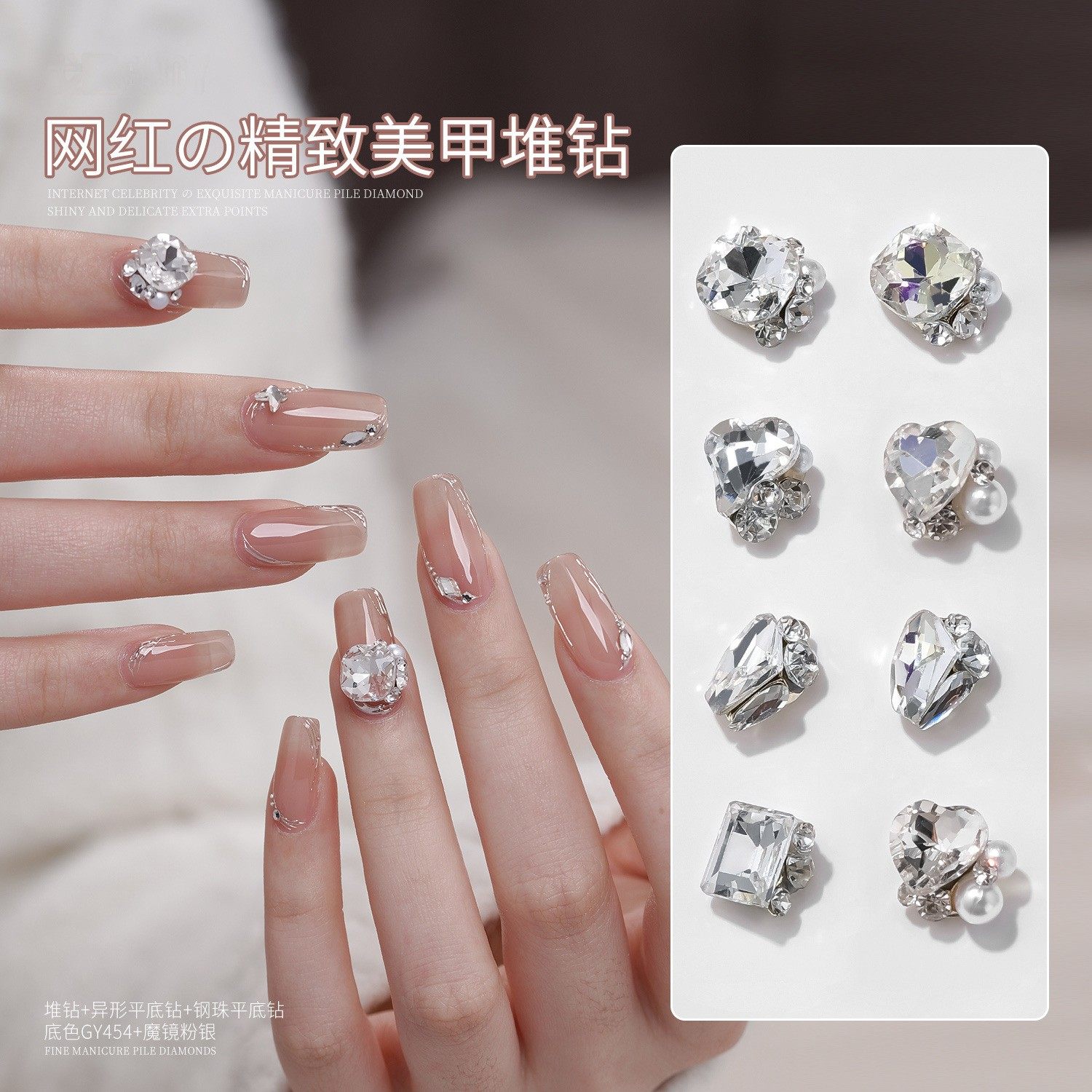 淘宝24颗套装白开水美甲堆钻爆款指甲饰品歪心肥方透白色钻美甲店盒装