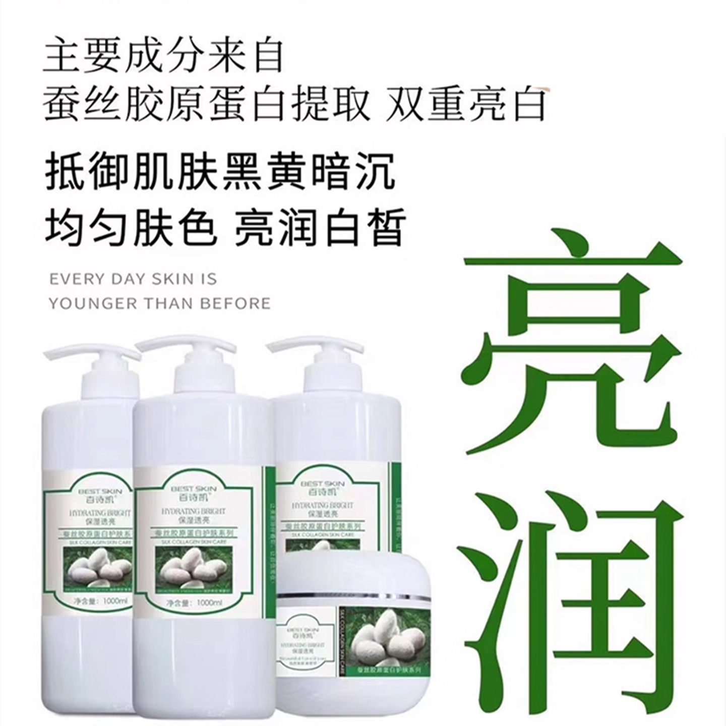 淘宝美容院套装百诗凯蚕丝胶原蛋白爽肤水按摩膏洁面乳面膜霜乳液精华