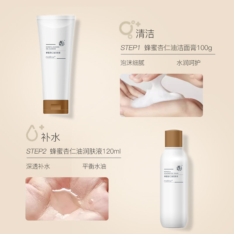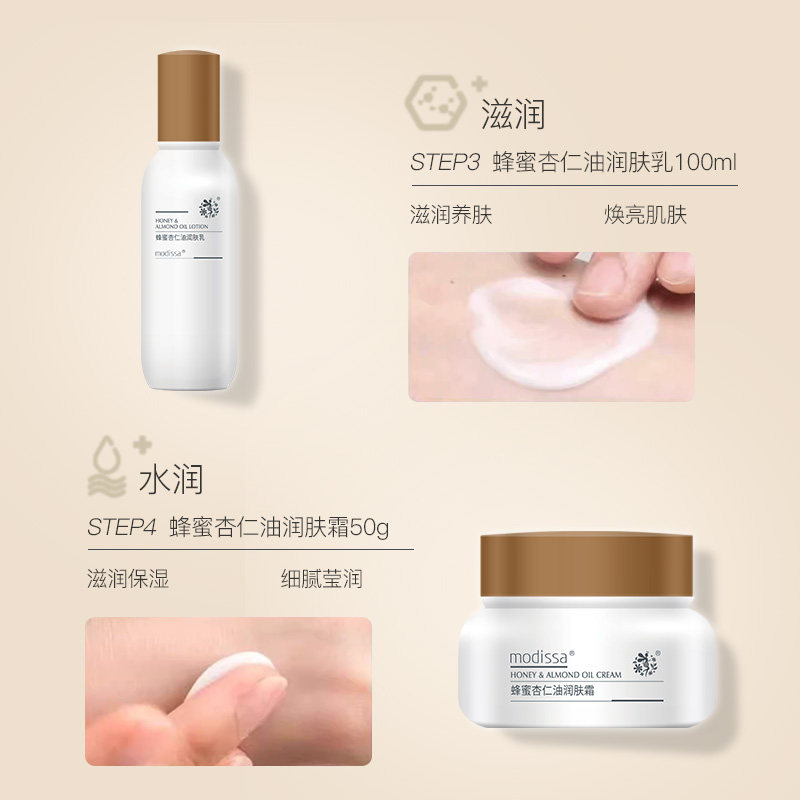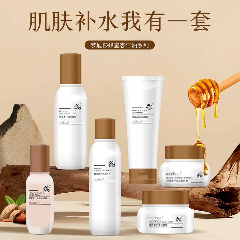 天猫梦迪莎杏仁油洁面水乳液霜套装滋润补水保湿化妆品正品官方旗舰店