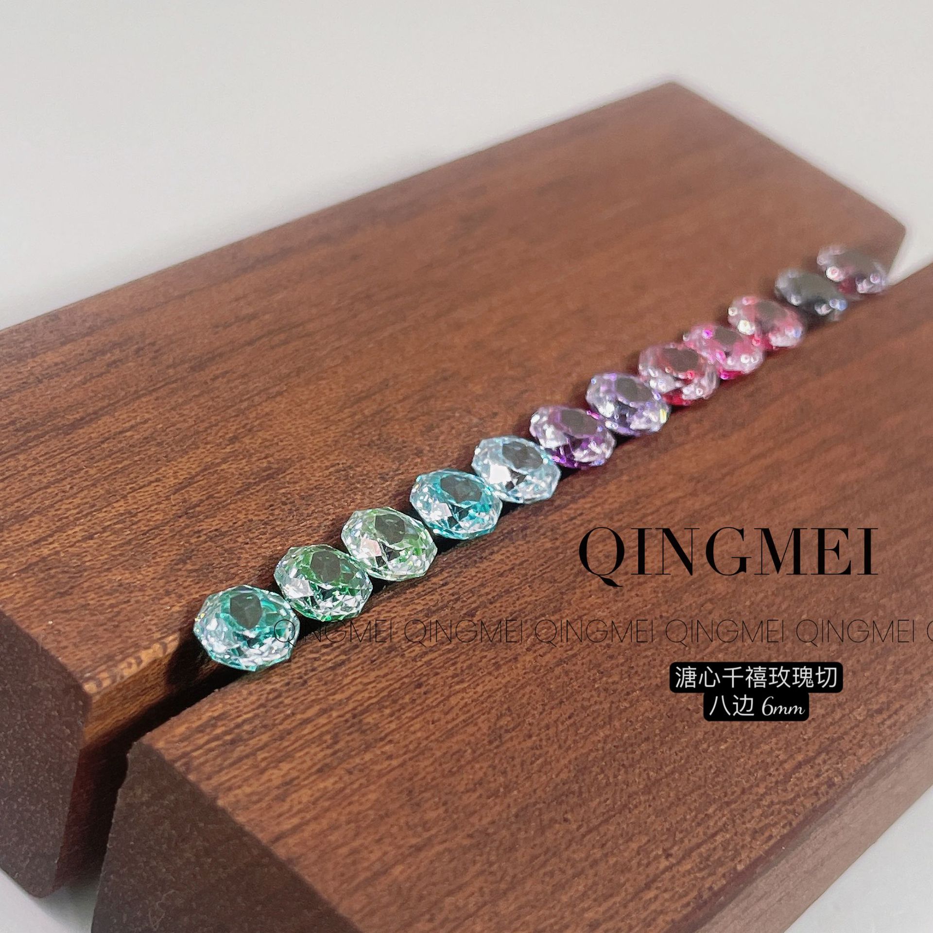 淘宝青昧 高碳钻锆石八边彩色千禧玫瑰夹心软糖玫瑰切爆闪6mm