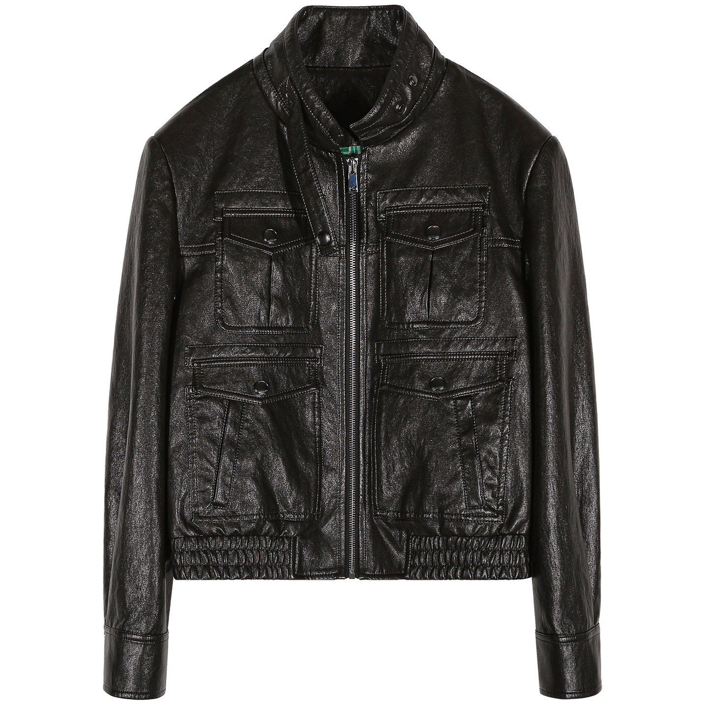 MSLAN纸感皮衣 26春时尚立领机车黑色皮衣短款廓形显瘦夹克外套女
