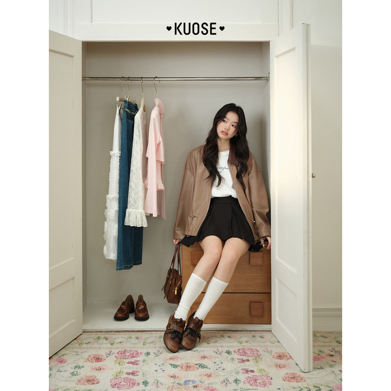 水云间短款智性皮衣外套女高知风酷感落肩长袖上衣宽松2026春新款