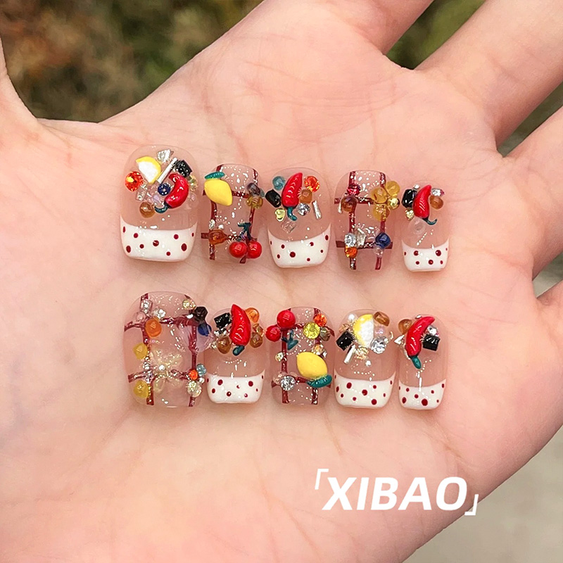 淘宝法式穿戴甲短款手工夏日精致穿戴美甲2025新款高级感重工指甲贴片