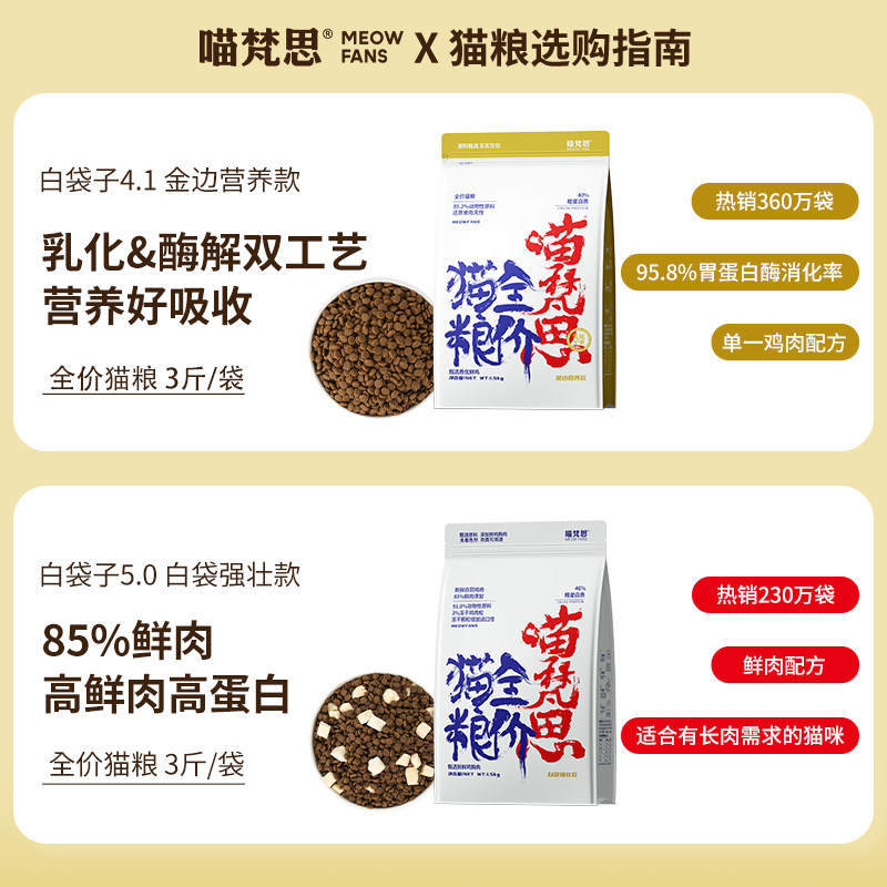 天猫喵梵思白袋子金边猫主粮1.5kg全价冻干粮英短布偶幼猫成猫粮