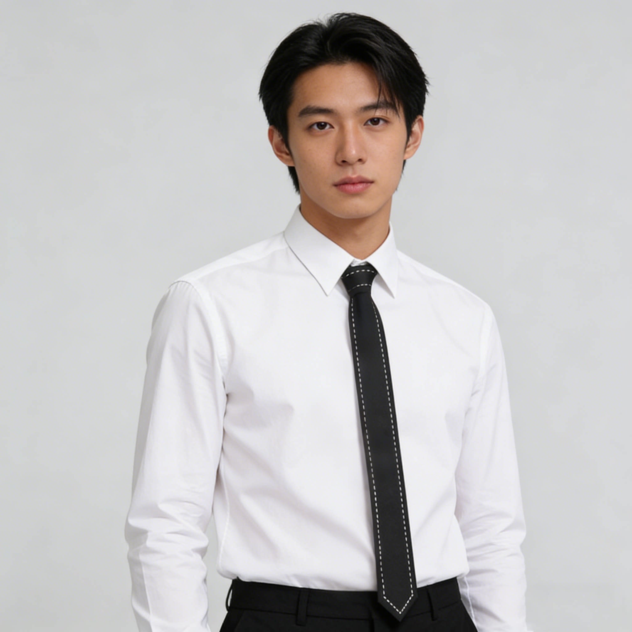 这款黑色领带搭配女式韩版休闲衬衫,以简约白虚线装饰点缀,融合学院风与职业感,展现小众高级时尚气质。采用优质面料,剪裁修身利落,既保留衬衫的干练,又融入韩系休闲的随性优雅。可搭配西装外套打造职场造型,亦可单穿搭配牛仔裤,轻松驾驭日常通勤与轻社交场合。细节处匠心独运,领口、袖口的精致走线与可拆卸黑色领带设计,增添层次感与个性表达,是追求质感与独特风格的现代女性的理想之选。低调中见品味,简约中显格调。
