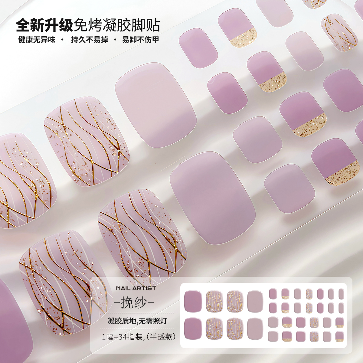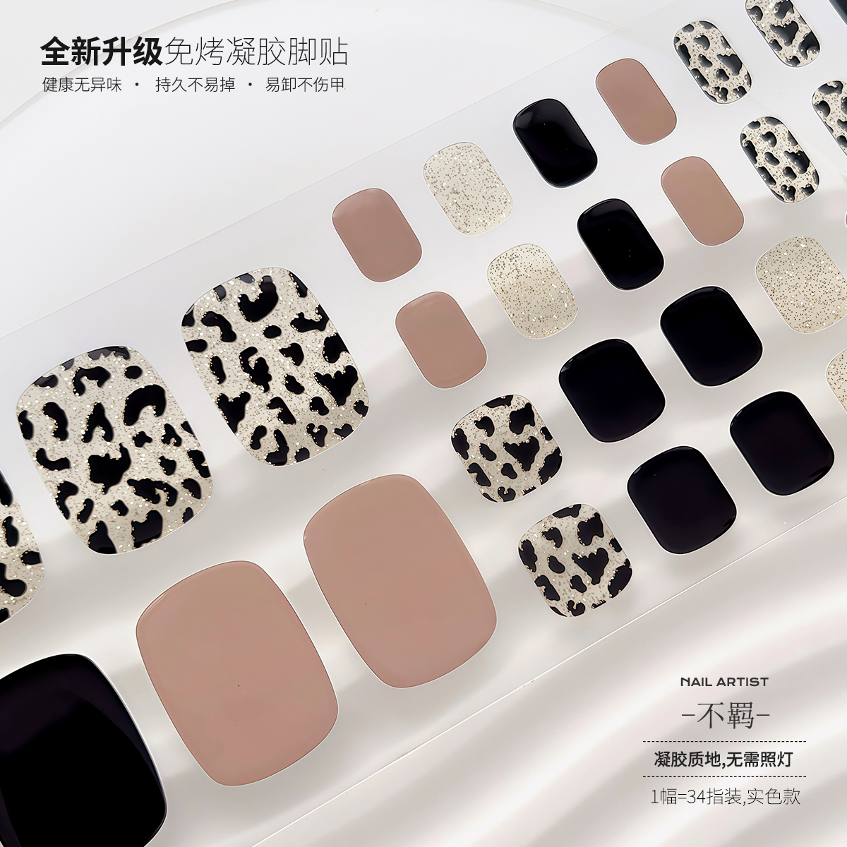 【蔓觅】免烤凝胶贴是一种便捷时尚的美甲全贴片。此款产品不需要复杂的烤制过程和照灯全固化步骤,仅需简单贴上即可享受时尚美甲。第四代美甲全贴片设计贴合自然,完美呈现美甲效果。使用此产品无需专业技巧,适合各种场合,无论是派对、约会还是日常穿着都能轻松应对。它让你的脚趾指甲焕然一新,让你自信展现美丽。时尚又便捷,【蔓觅】免烤凝胶贴是你展现自我风格的理想选择。
