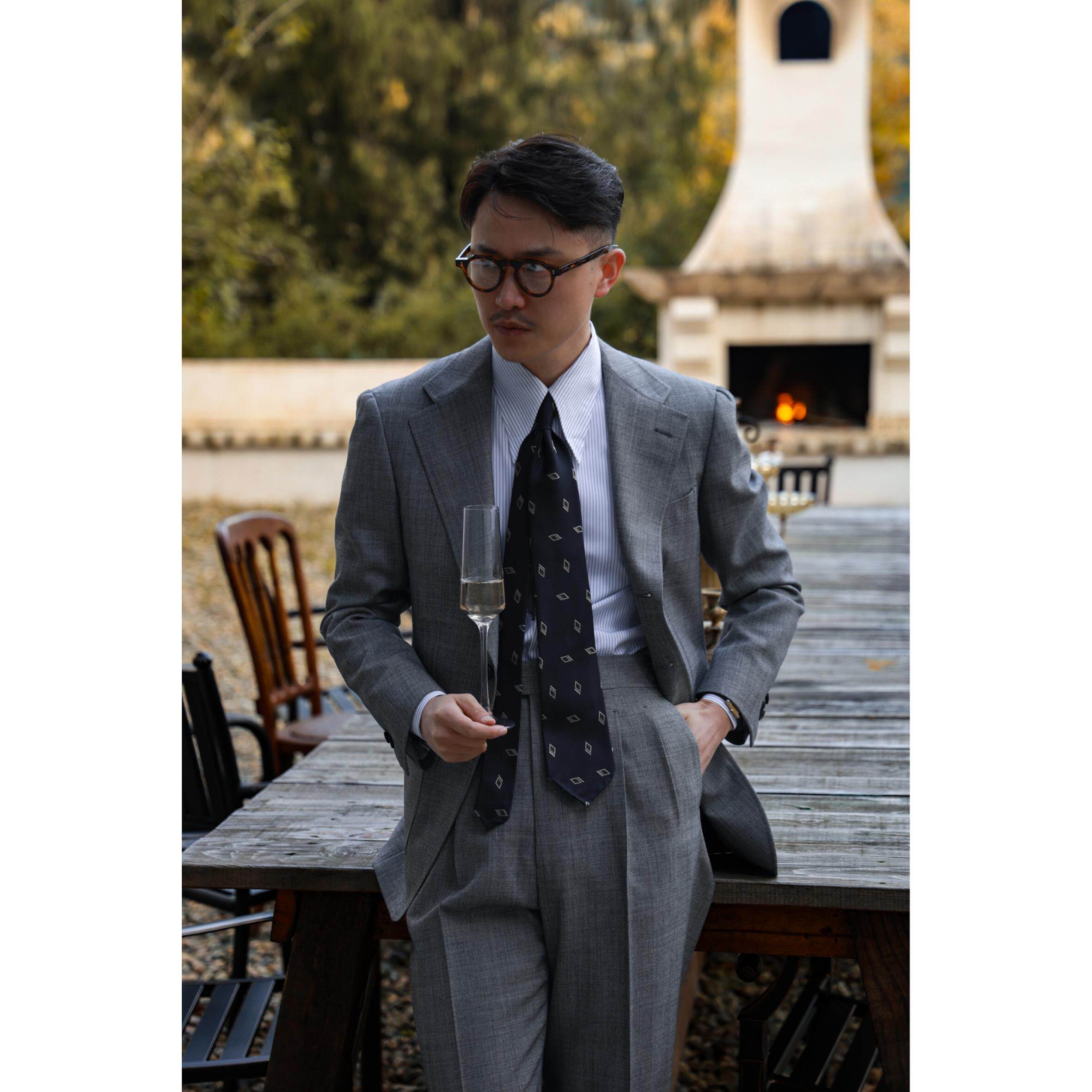 淘UGENTLE 桑蚕丝 《镜影系列》全手工意式卷边 飘逸领带3 fold tie