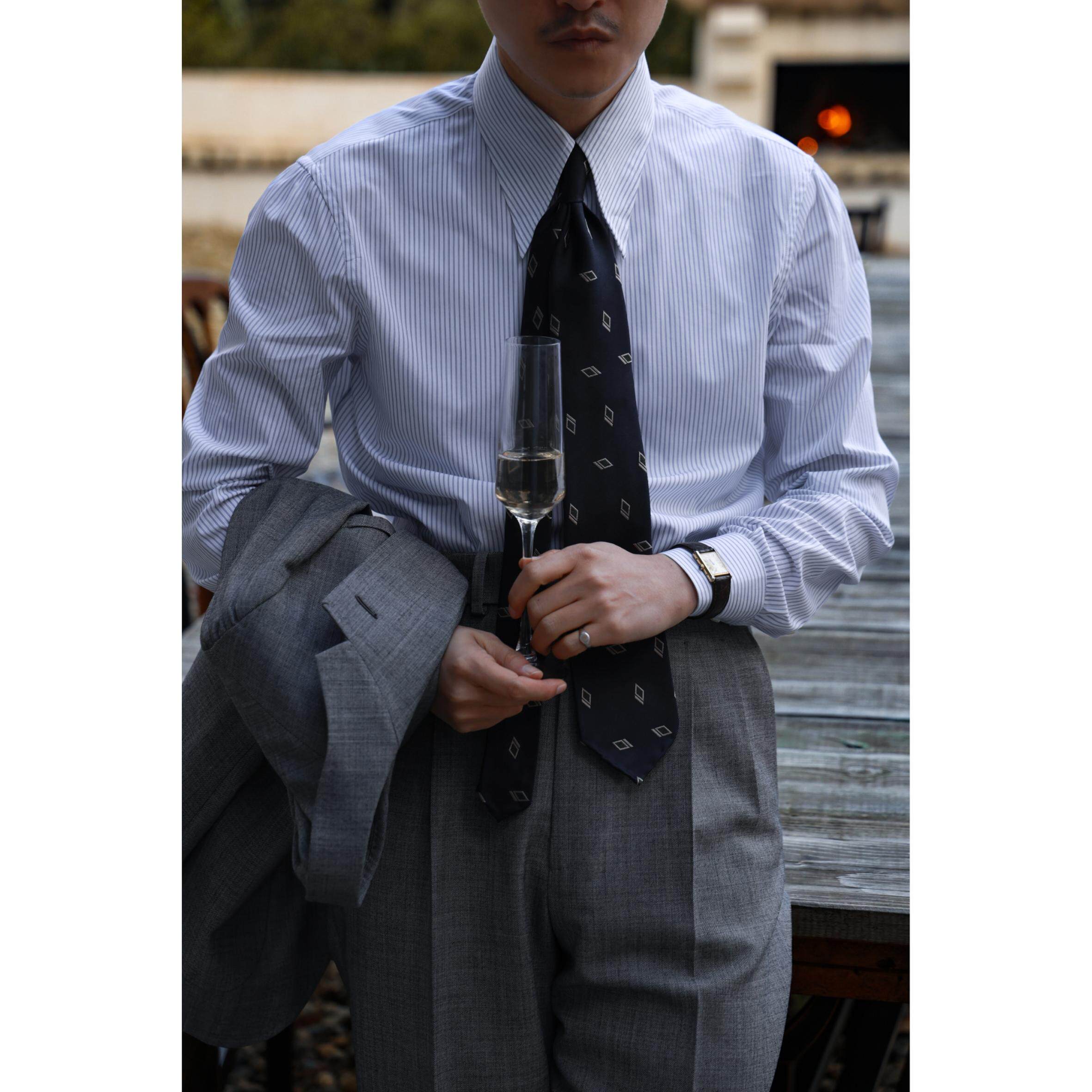 UGENTLE 桑蚕丝 《镜影系列》全手工意式卷边 飘逸领带3 fold tie