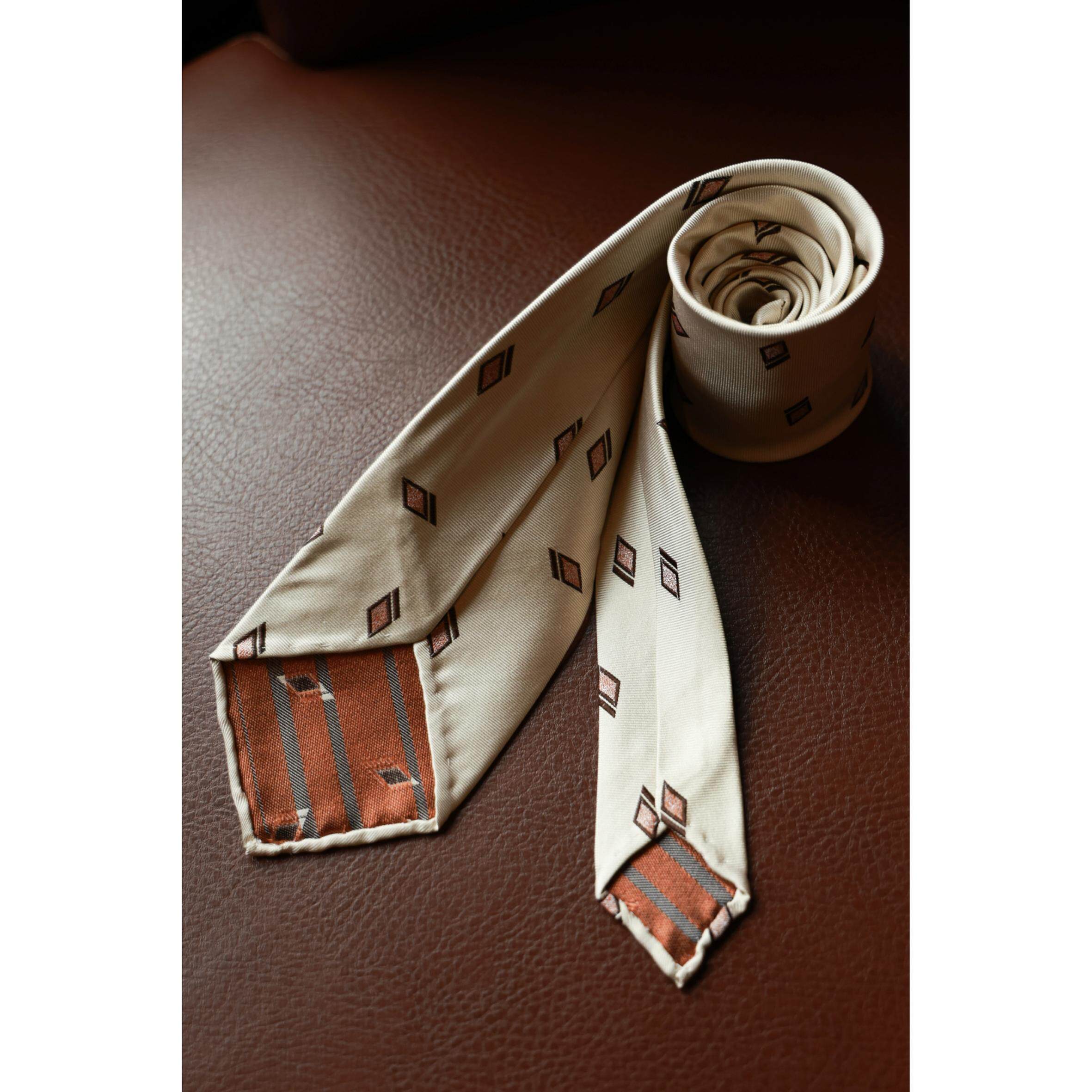 UGENTLE桑蚕丝《菱花系列》全手工卷边意式飘逸领带(3-fold tie),甄选100%优质桑蚕丝面料,以经典菱花纹样为灵感,融合东方雅致与意式优雅。采用传统三折工艺,结构挺括、垂感自然,全手工卷边处理细腻精致,彰显匠心品质。轻盈飘逸的质地搭配低调奢华的光泽,适合商务正装或高级社交场合,轻松提升整体造型格调。每一细节皆体现对传统工艺的坚守与现代审美的追求,是品味男士不可或缺的优雅配饰。
