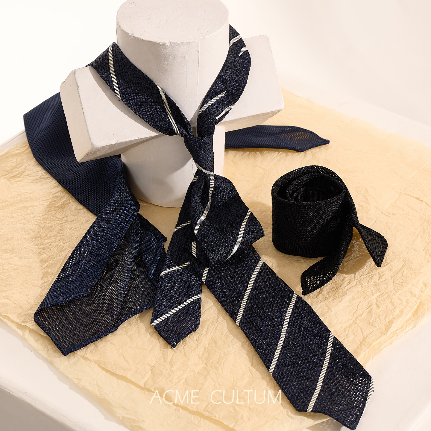 天猫Acme cultum桑蚕丝镂空轻盈手工七折条纹手打领带男正装配饰礼盒