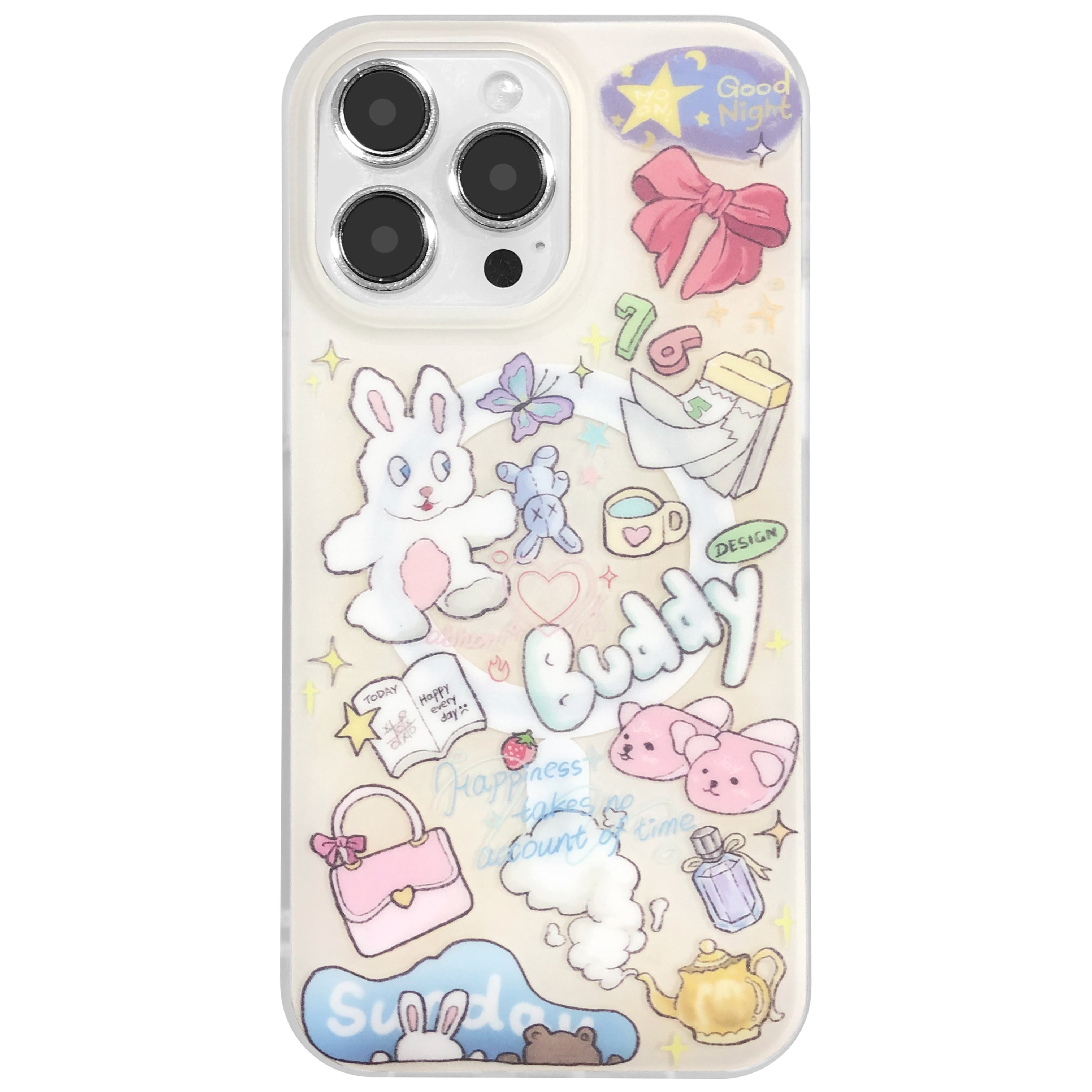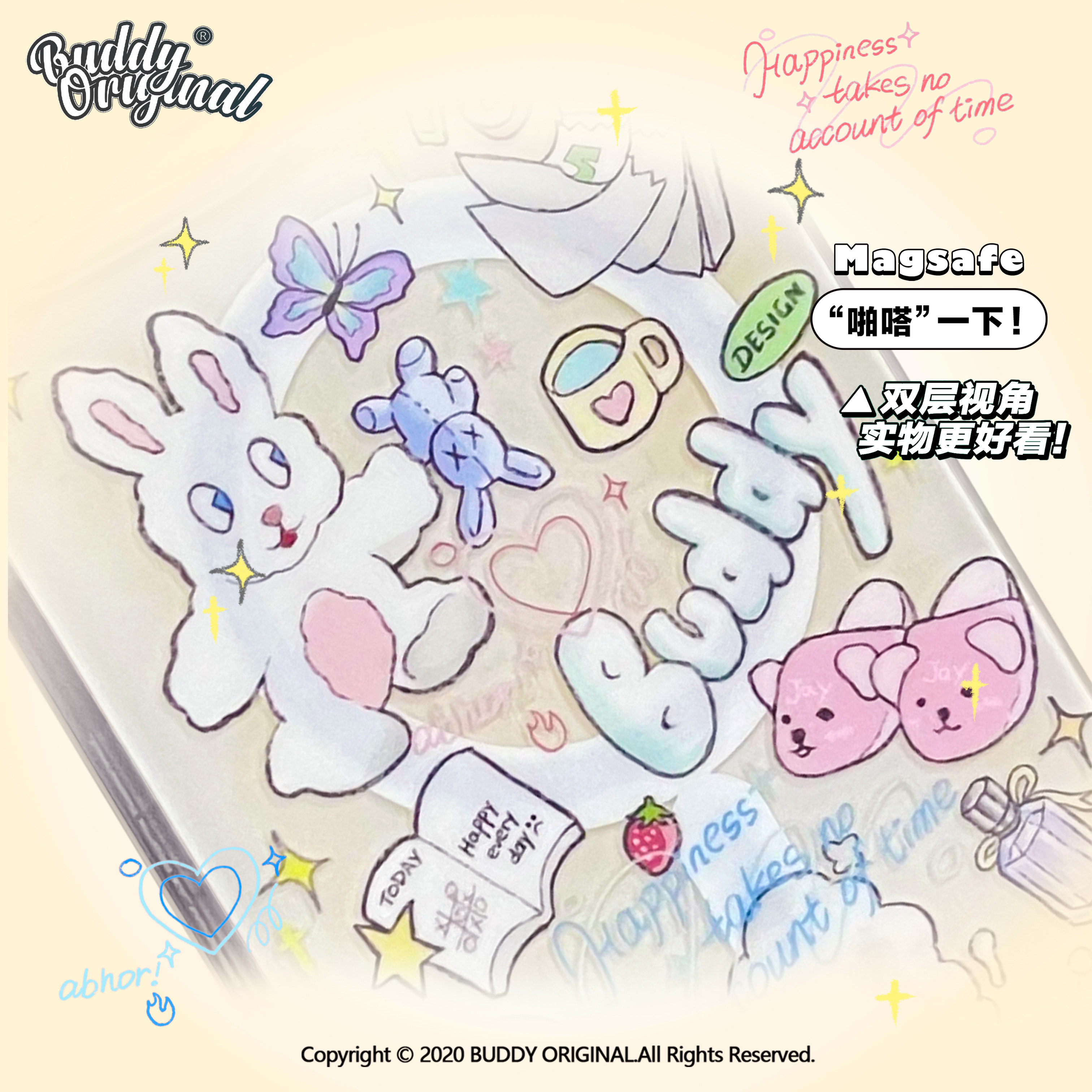 BUDDY原创兔子铅笔涂画风手机壳,专为苹果iPhone 17 Pro Max、16、15、14 Pro及13/12系列设计,同时适配华为Mate60,兼容磁吸功能,轻松吸附无线充电。采用高品质软胶材质,防摔抗震,手感细腻。原创手绘兔子图案搭配清新铅笔涂画风格,充满童趣与艺术感,展现独特个性。四角加固设计,全面保护机身,开孔精准,不影响按键与接口使用。轻薄贴合,不增厚重,兼具美观与实用性。无论是自用还是送礼,这款可爱又高级的卡通手机壳都是时尚数码配件的理想选择,为日常增添一抹温暖治愈的色彩。