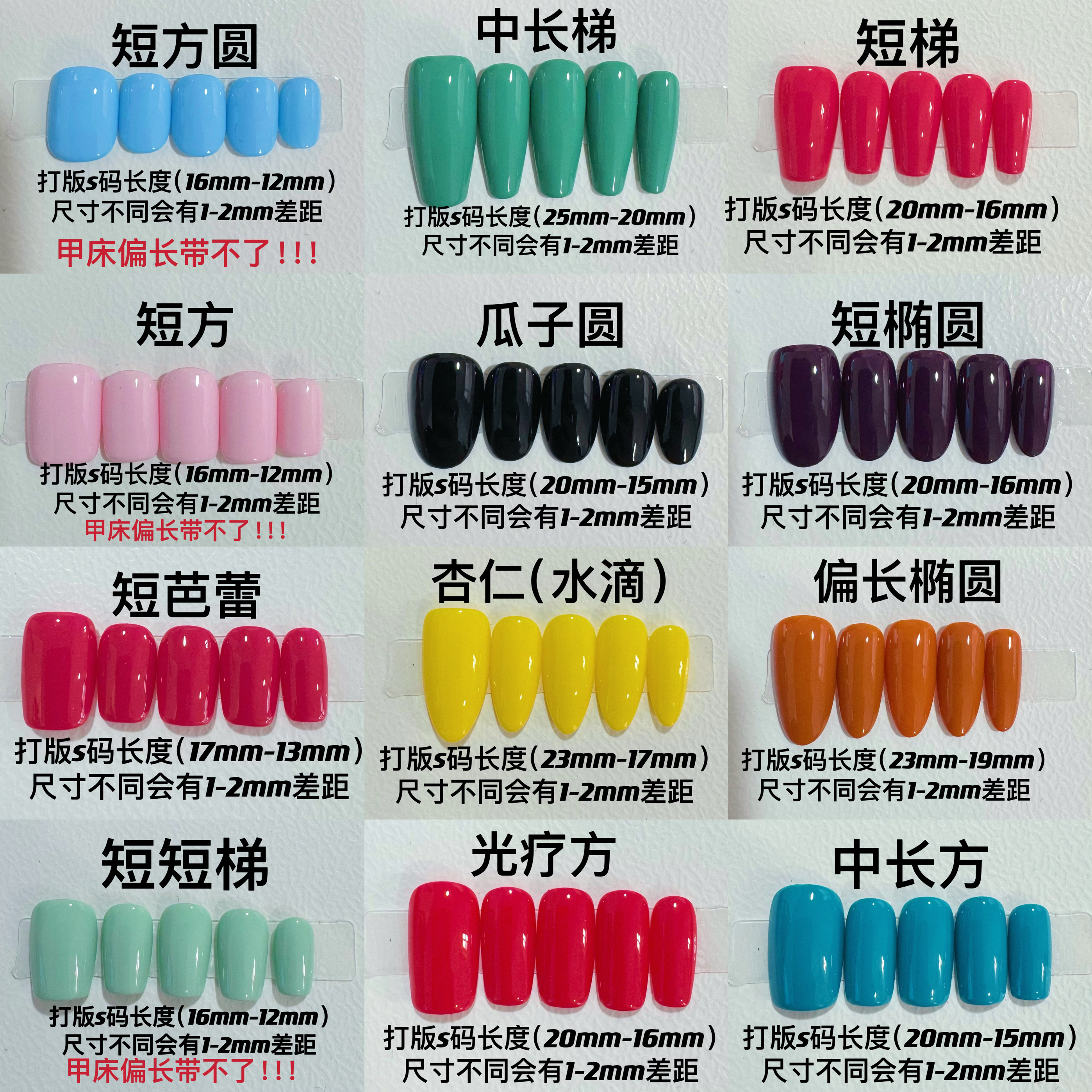 淘日式短方圆打版甲片美甲作品款式椭圆水滴梯形假指甲色板练习专用