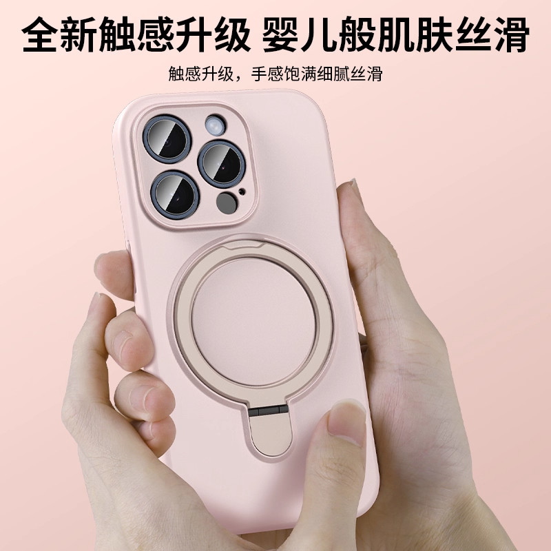 天猫适用于苹果15/16/17promax手机壳磁吸带折叠支架iphone13/14新款纯色进口液态硅胶保护套男女ai软壳全包防摔