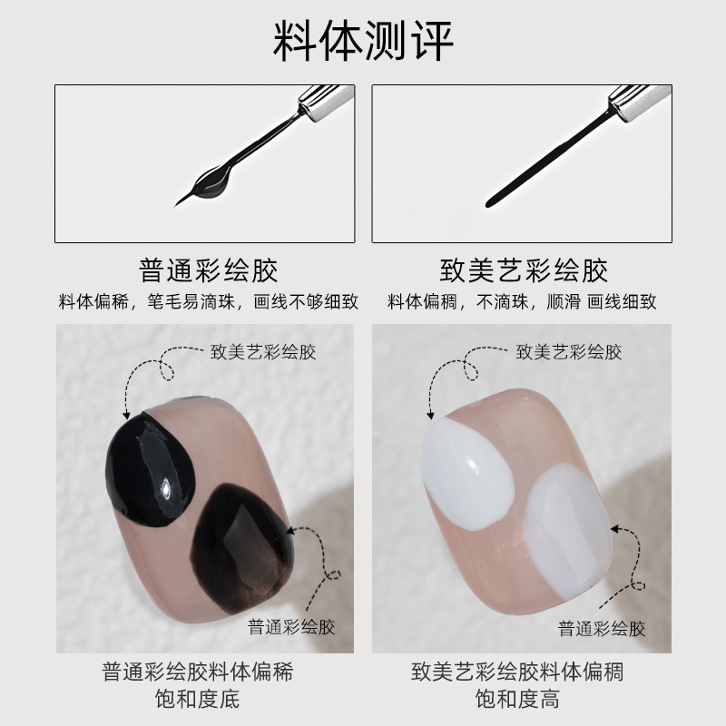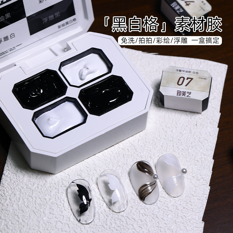 天猫致美艺2025新款黑白棋盘格四色彩绘浮雕免洗固态拍拍胶美甲店专用