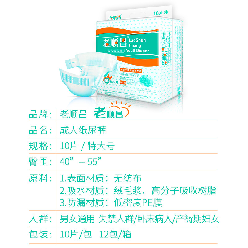 天猫老顺昌老人纸尿裤XL成人尿布加厚型尿不湿纸尿片尿垫护理垫旗舰店