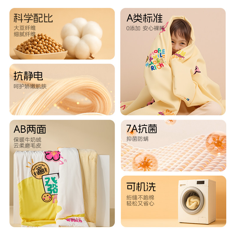“有钱花×法国SmileyWorld联名款婴幼儿盖毯,专为宝宝娇嫩肌肤设计,采用A类婴幼儿安全标准,亲肤柔软,安全无刺激。精选优质加绒面料,触感细腻,保暖透气,四季皆宜。萌趣可爱的SmileyWorld笑脸图案,色彩柔和,激发宝宝视觉发育,增添童趣温馨。可机洗、不易起球变形,耐用易打理。无论是日常午睡、外出携带,还是作为安抚毯使用,都是宝妈的贴心之选。让每一次拥抱都更温暖,守护宝宝甜美梦境。”