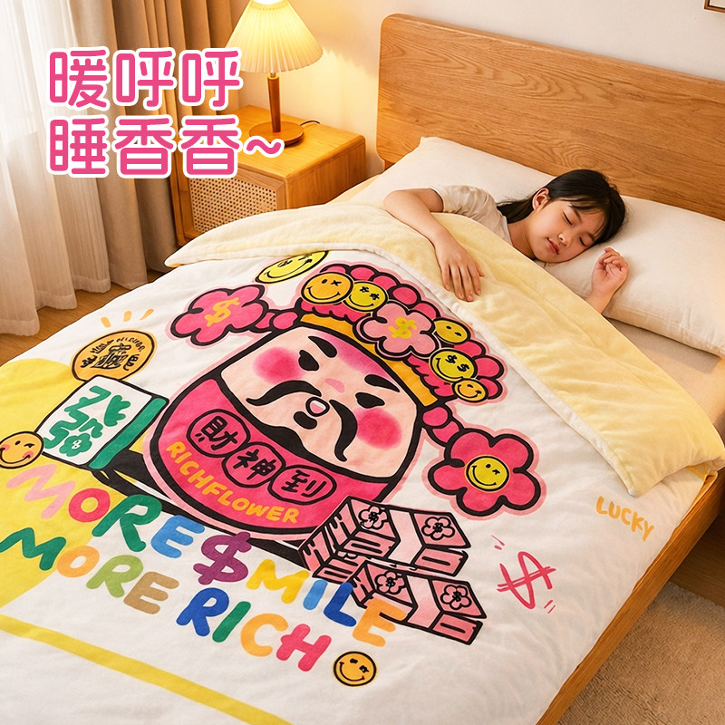 天猫有钱花×法国SmileyWorld盖毯婴幼儿童毛毯宝宝保暖加绒小毯子a类